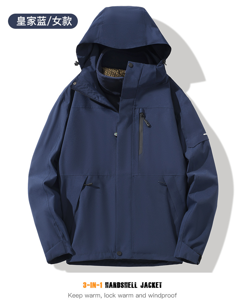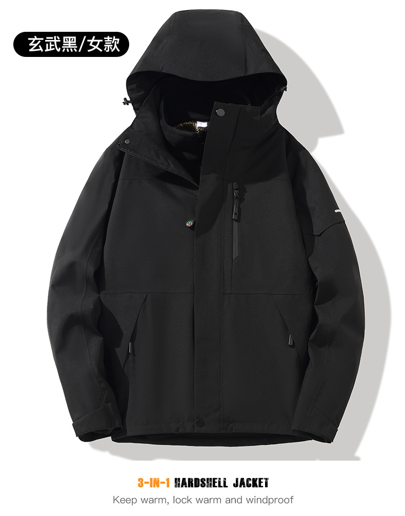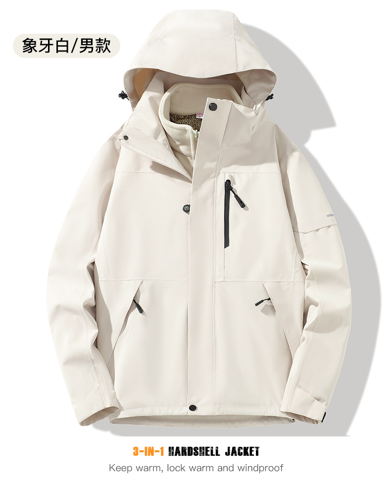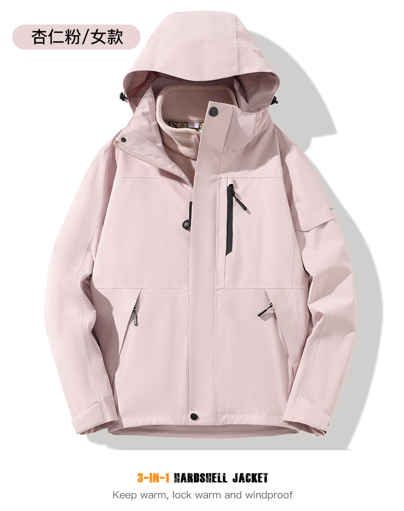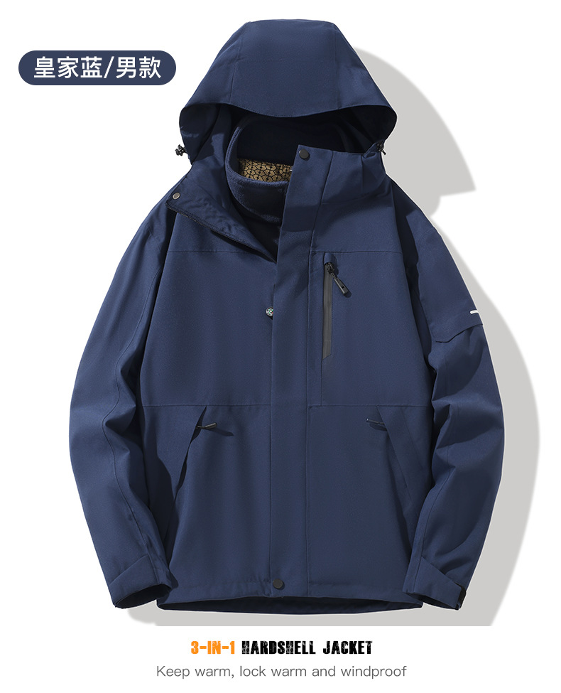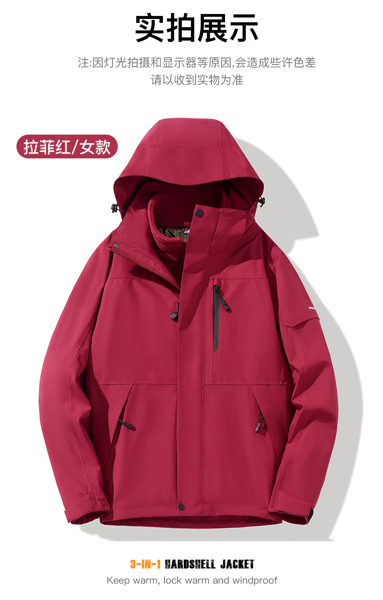 산악용 아웃도어 재킷 맞춤형 로고 방풍 방수 플러스 벨벳 안감 보온 삼중 기능 등산복 라미네이팅 공정