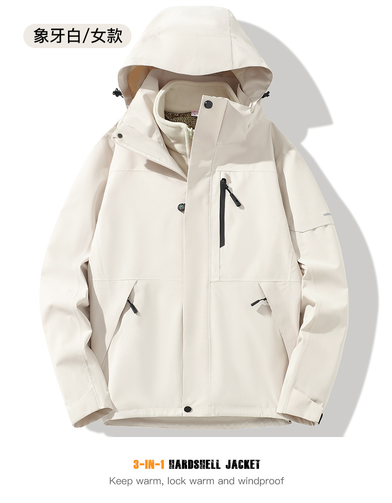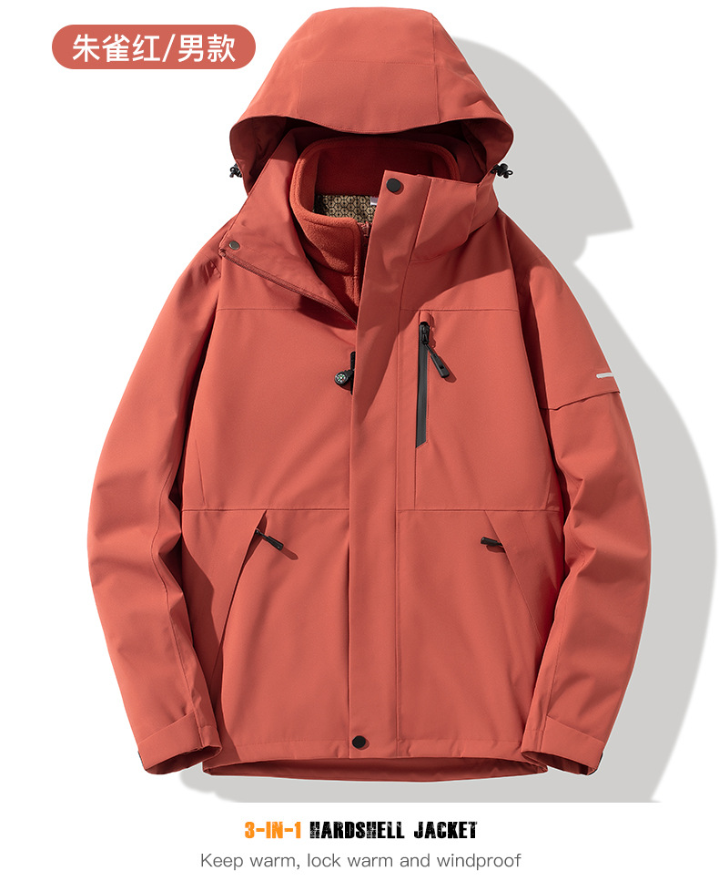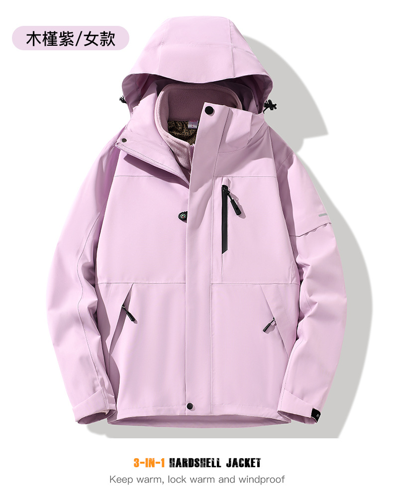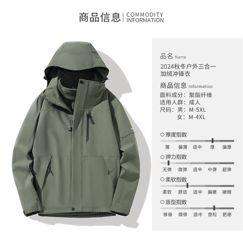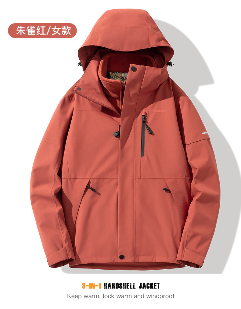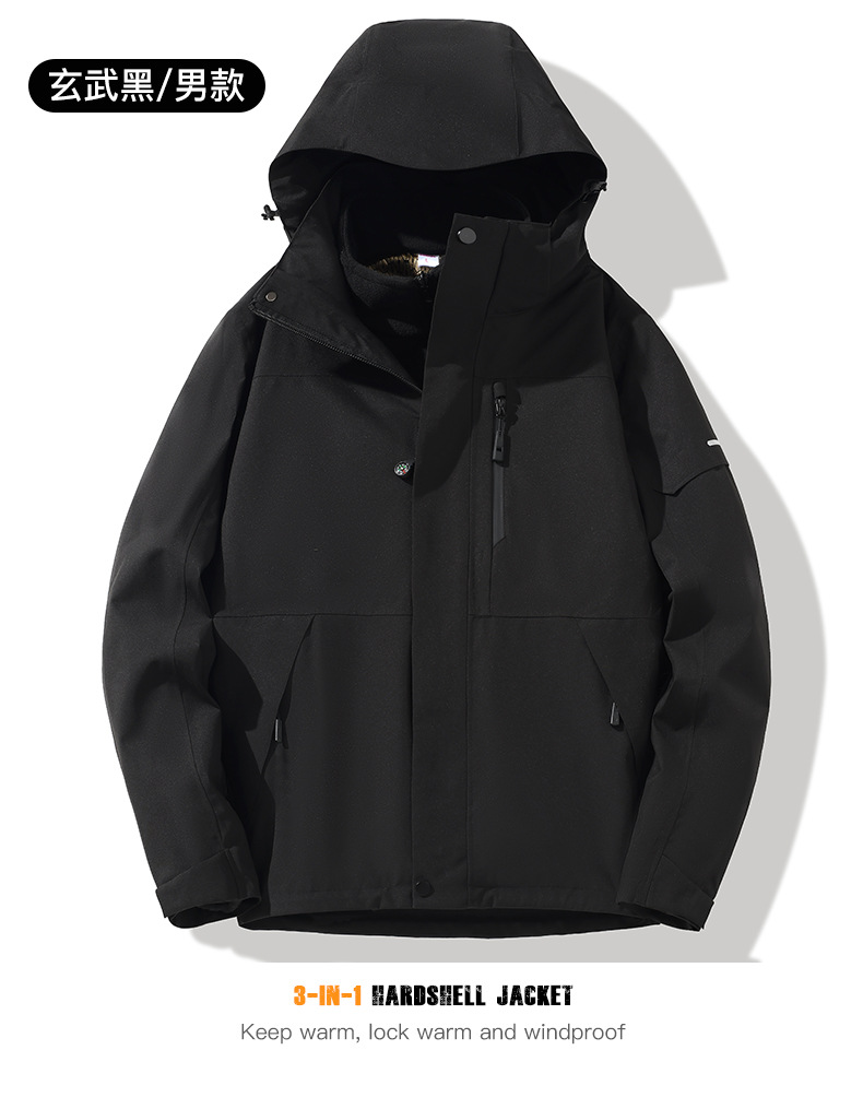 산악용 아웃도어 재킷 맞춤형 로고 방풍 방수 플러스 벨벳 안감 보온 삼중 기능 등산복 라미네이팅 공정