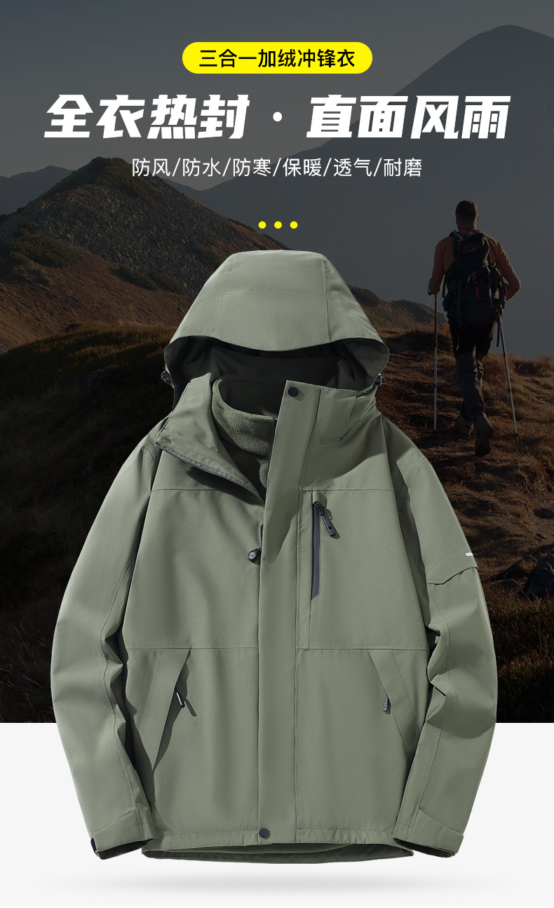 산악용 아웃도어 재킷 맞춤형 로고 방풍 방수 플러스 벨벳 안감 보온 삼중 기능 등산복 라미네이팅 공정스토어 가기