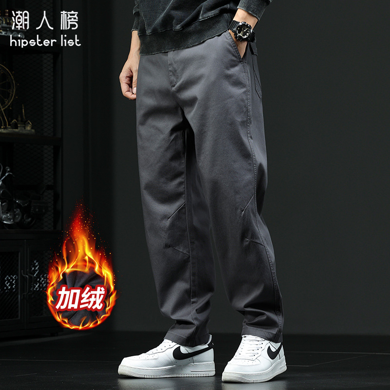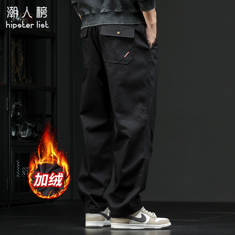 가을 겨울 신상 기모 안감 두꺼운 아메리칸 스타일 작업복 바지 남성 캐주얼 바지 루즈핏 큰 사이즈 와이드 팬츠 스트레이트 롱 팬츠 트렌디스토어 가기