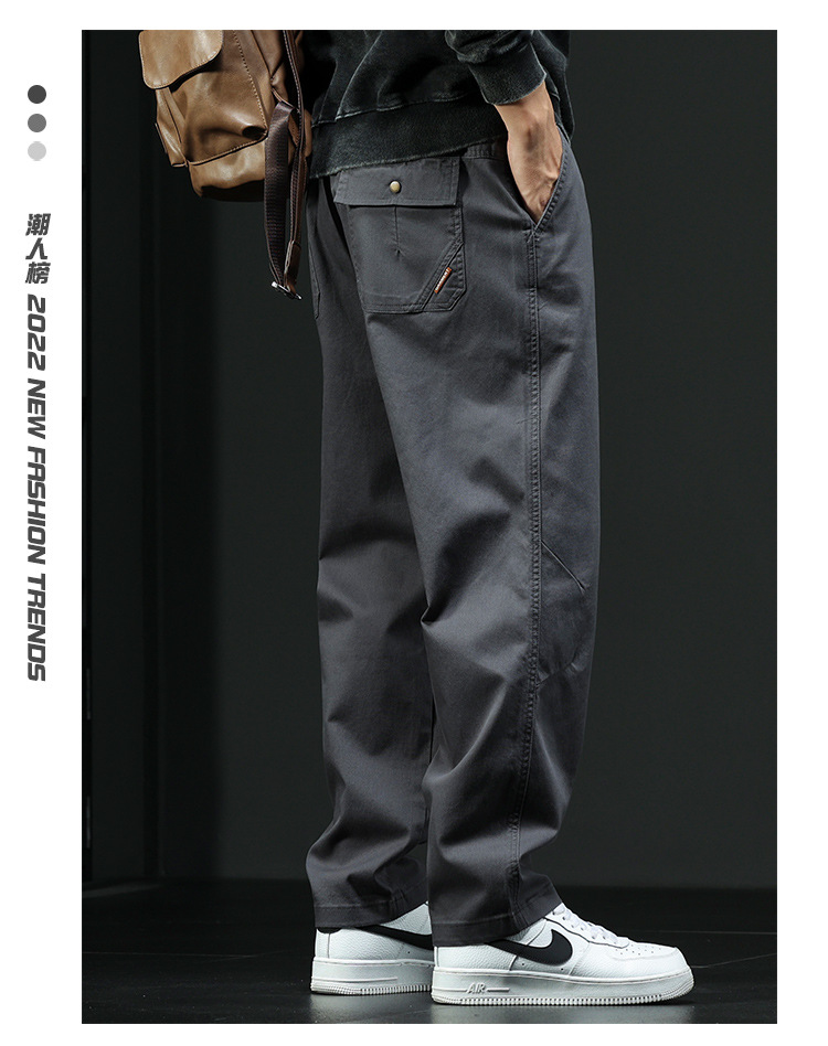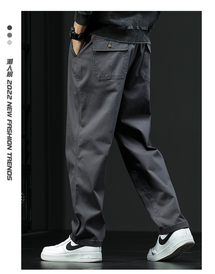 가을 겨울 신상 기모 안감 두꺼운 아메리칸 스타일 작업복 바지 남성 캐주얼 바지 루즈핏 큰 사이즈 와이드 팬츠 스트레이트 롱 팬츠 트렌디