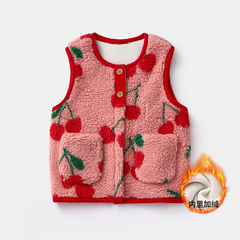 여자 양고기 벨벳 두꺼운 조끼 2025 겨울 벨벳 조끼 어린이 아기 따뜻한 외부 양복 조끼 3837