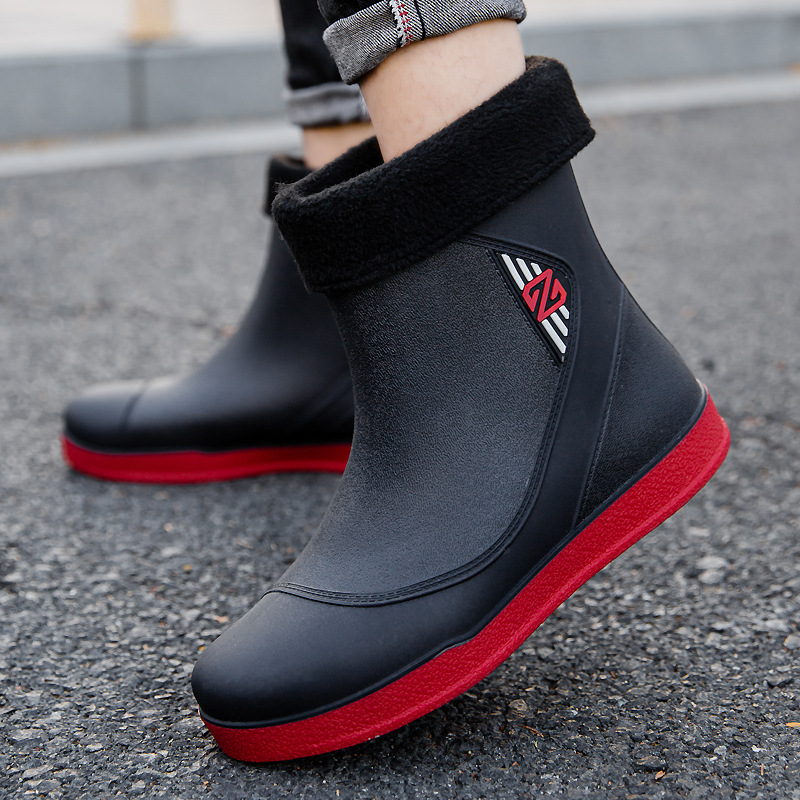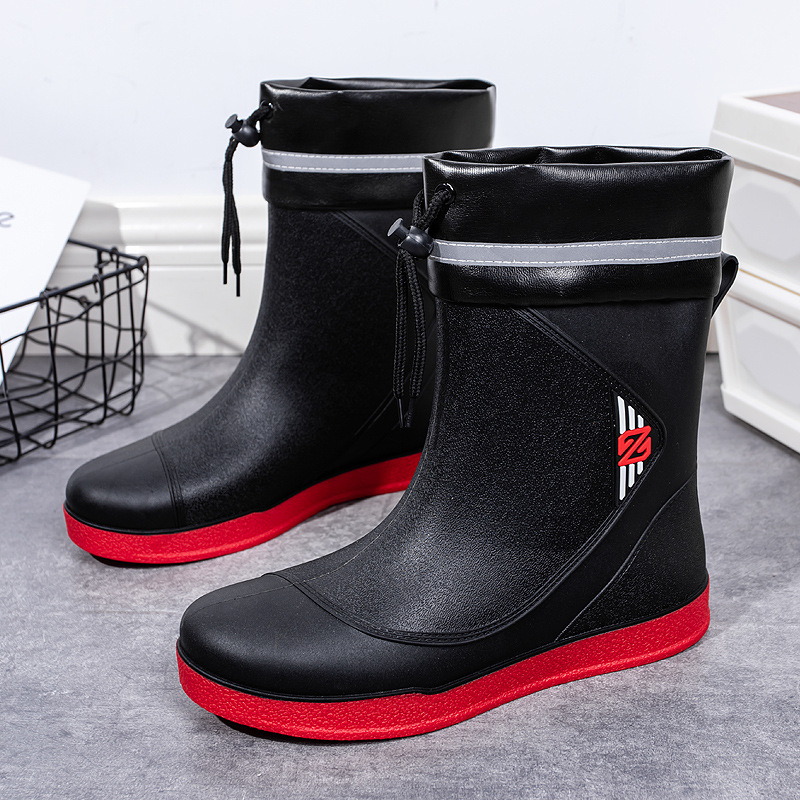 국경 간 캐주얼 장화 남성용 짧은 배럴 중간 배럴 비 장화 물 신발 미끄럼 방지 방수 플러스 빔 내마모성 낚시 고무 신발