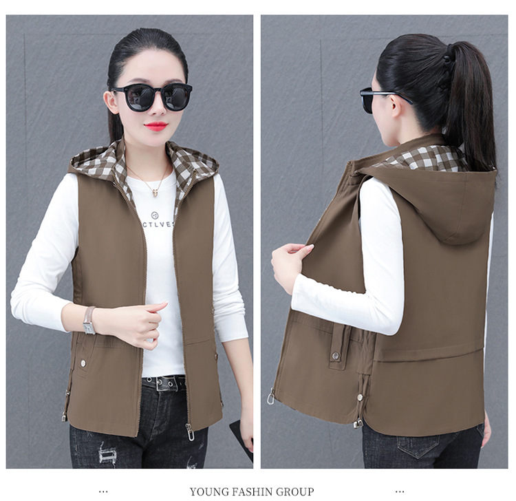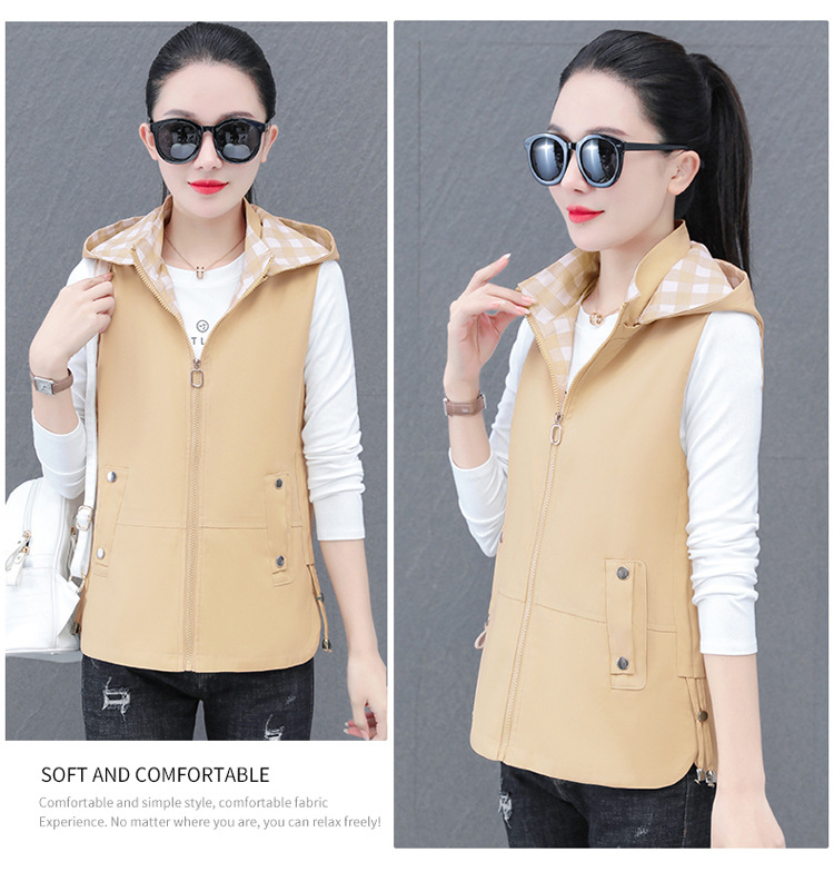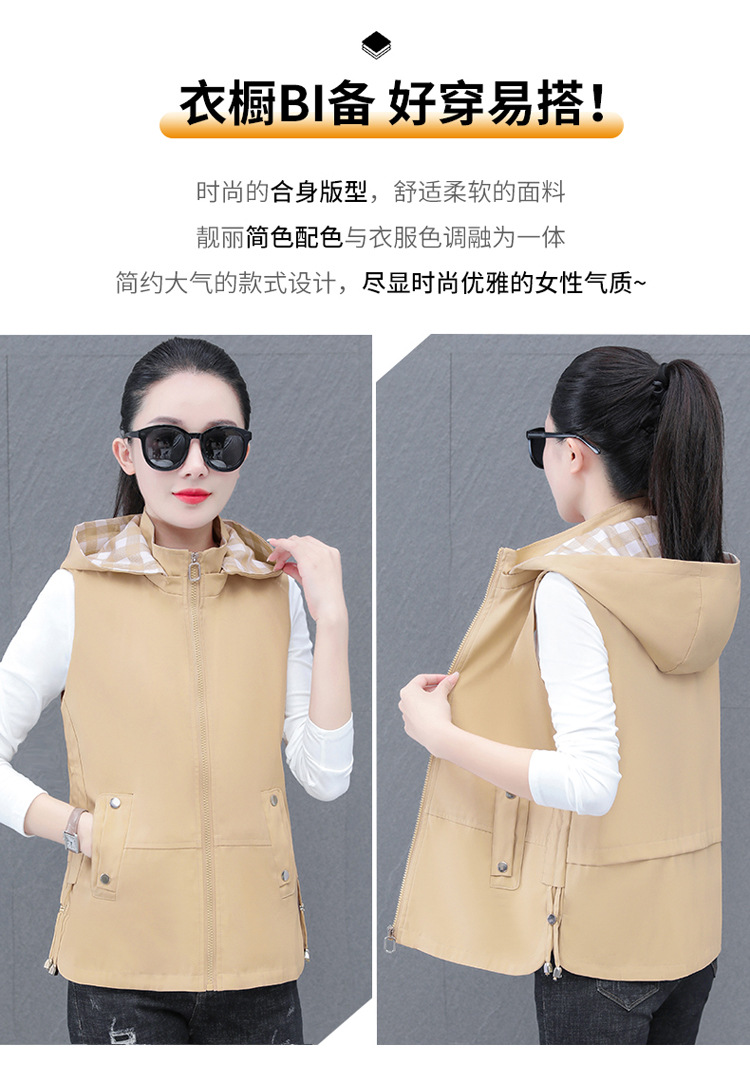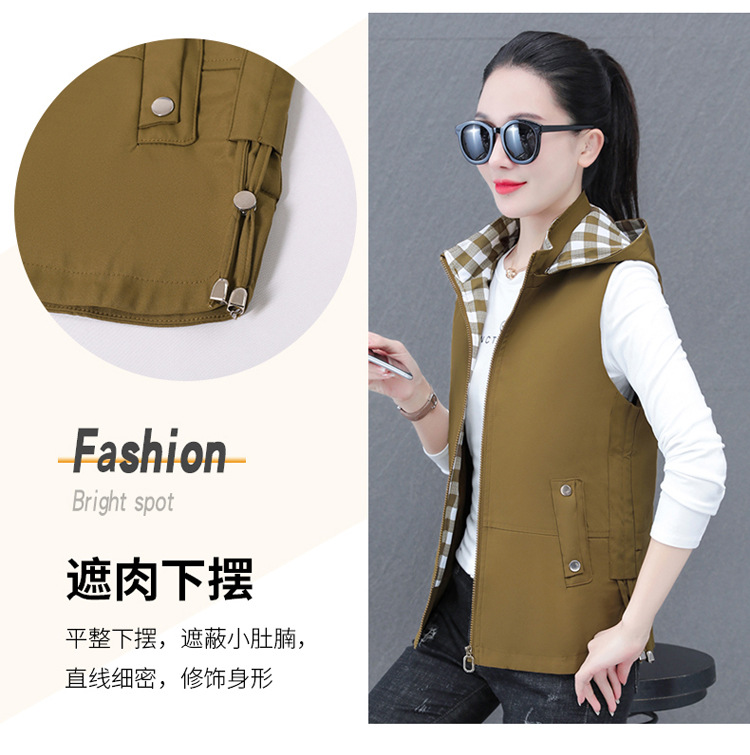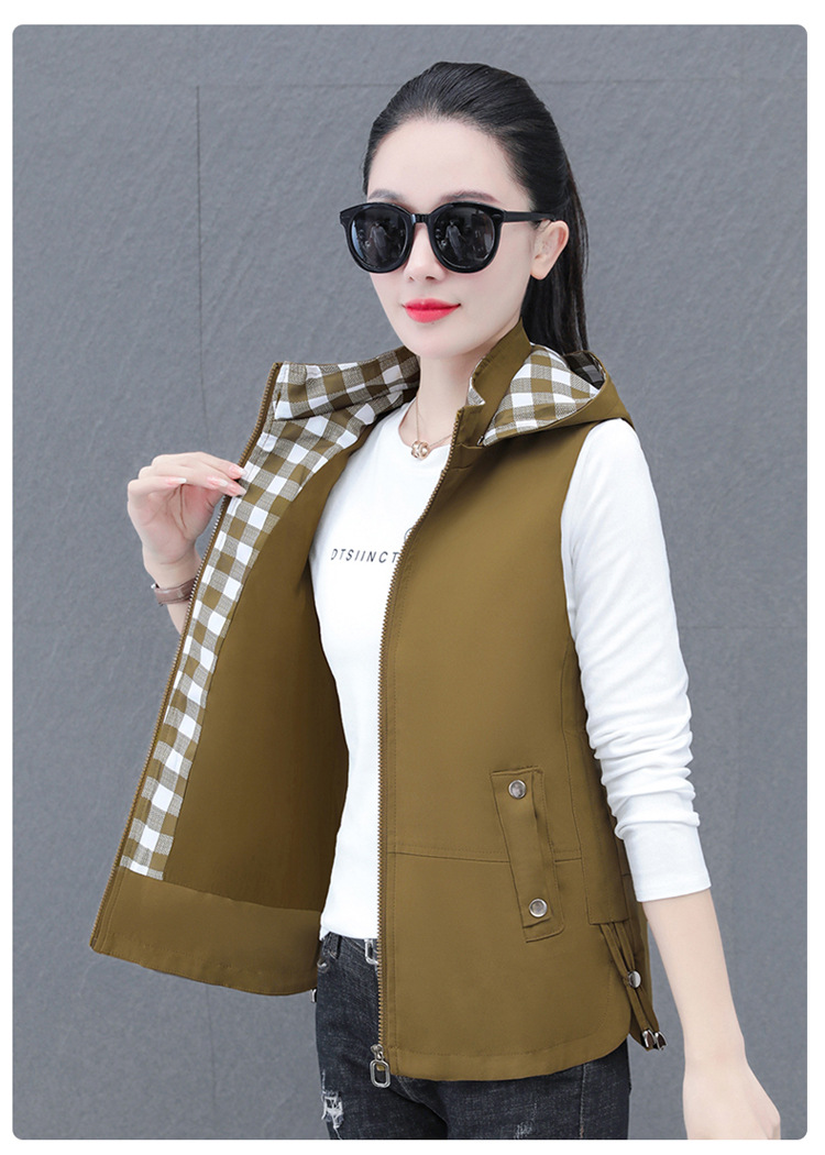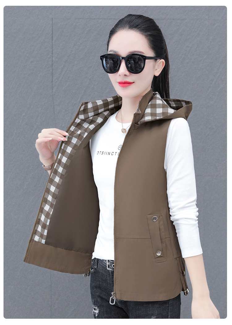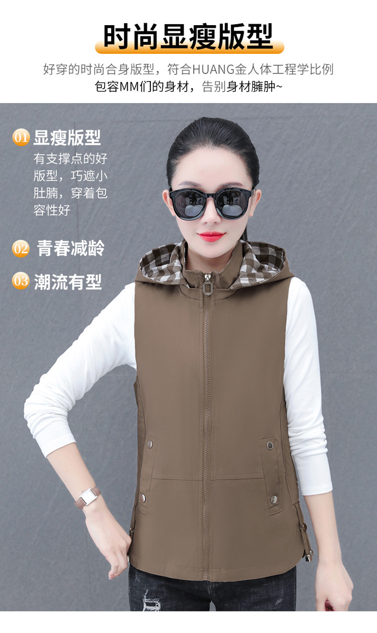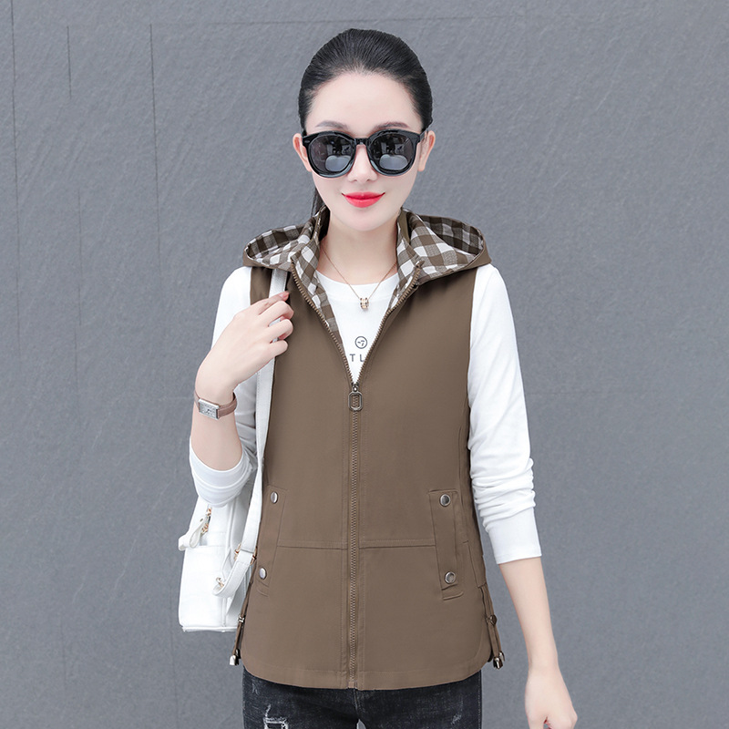 중년 엄마 유행 이동식 후드 얇은 조끼 여성을위한 봄과 가을 서양식 연령 감소 느슨한 슬림 핏 재킷