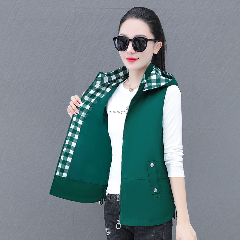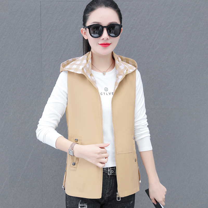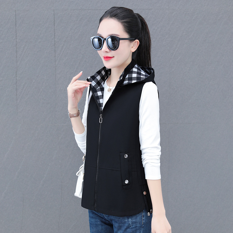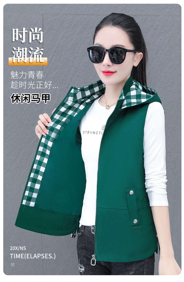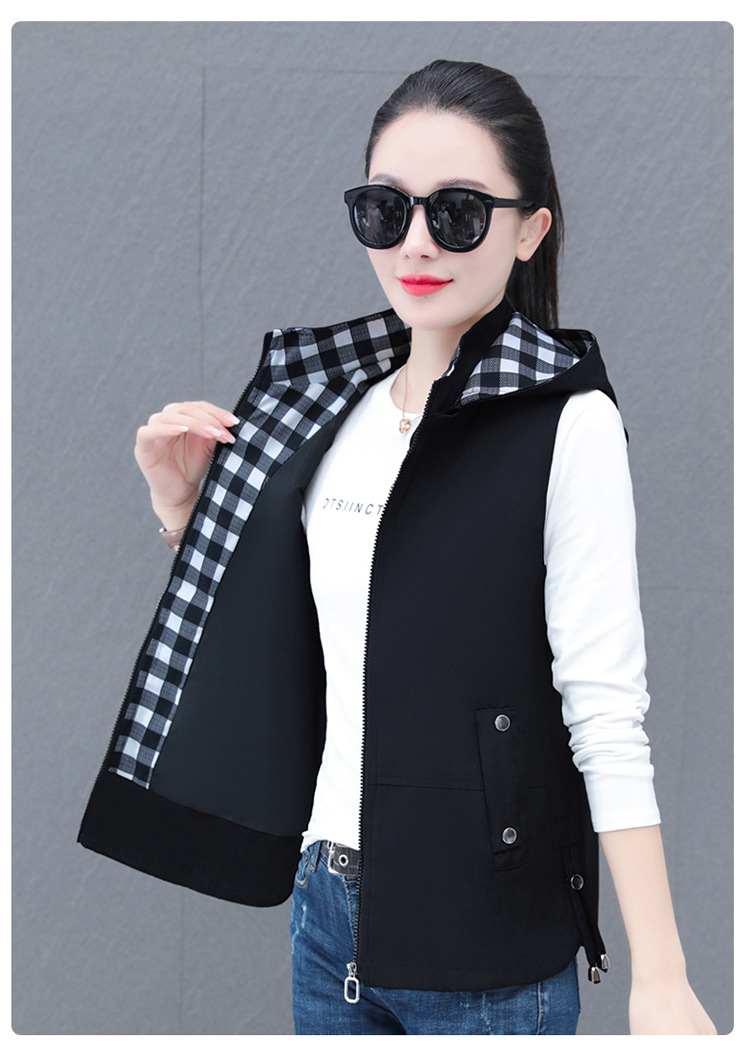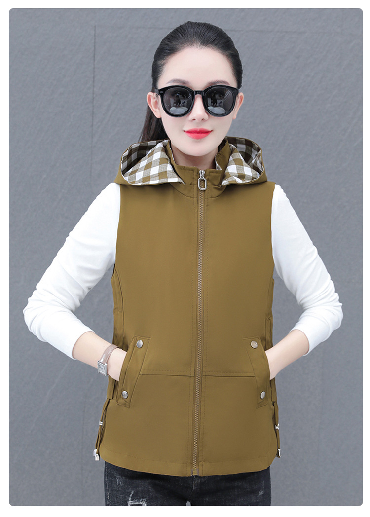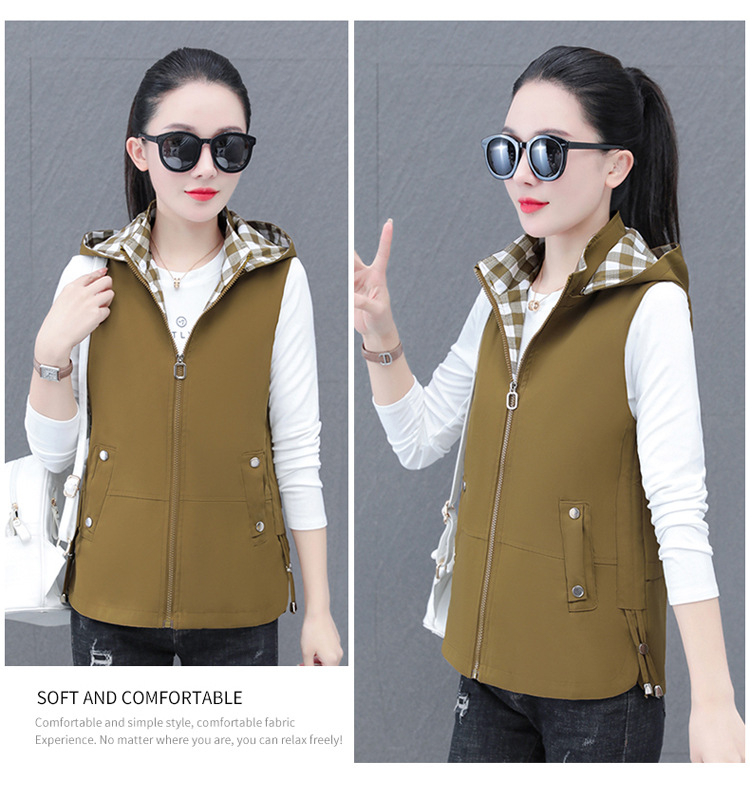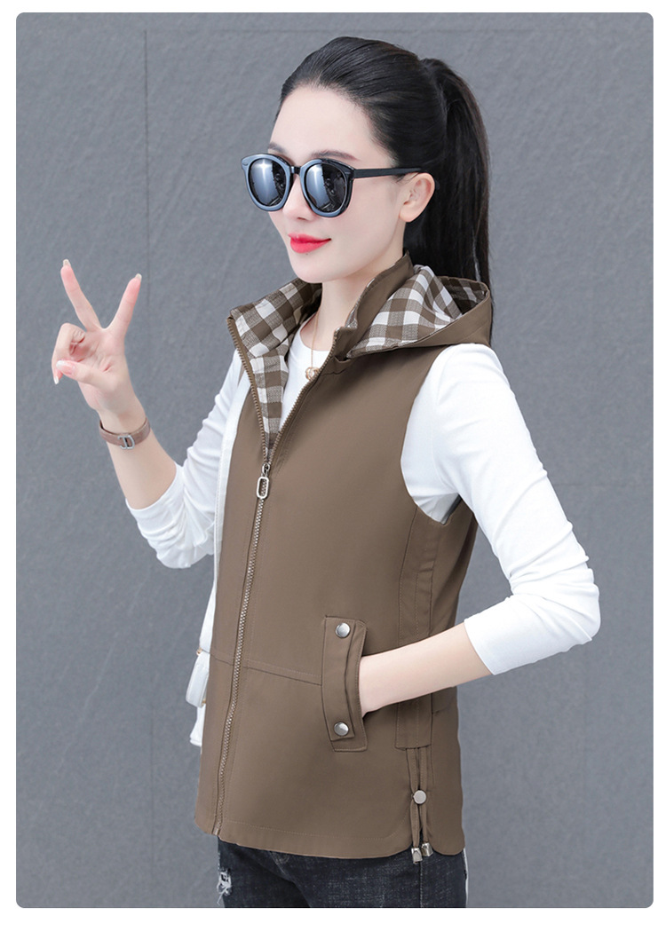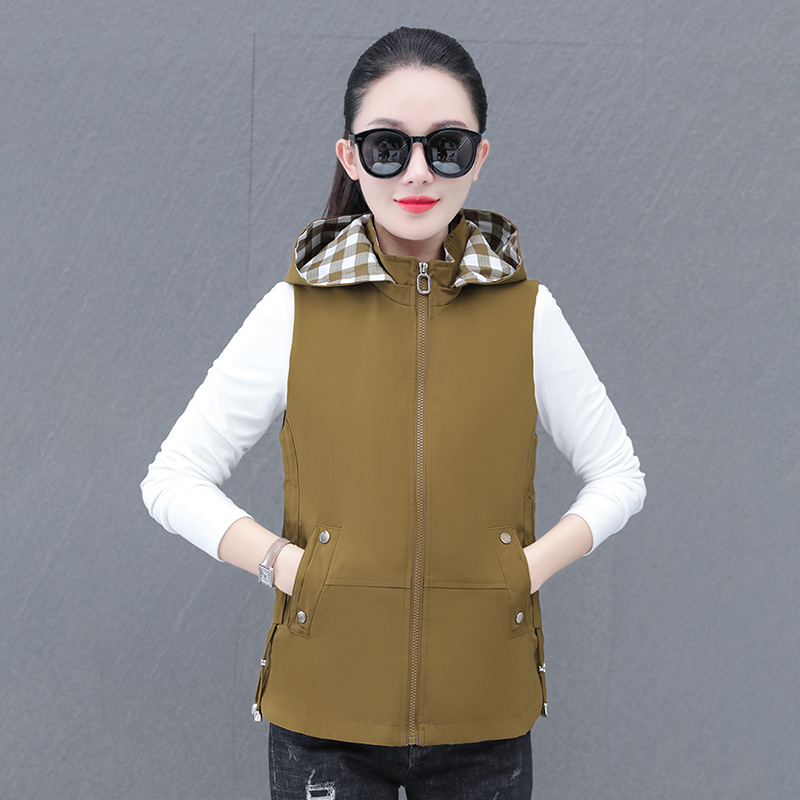 중년 엄마 유행 이동식 후드 얇은 조끼 여성을위한 봄과 가을 서양식 연령 감소 느슨한 슬림 핏 재킷
