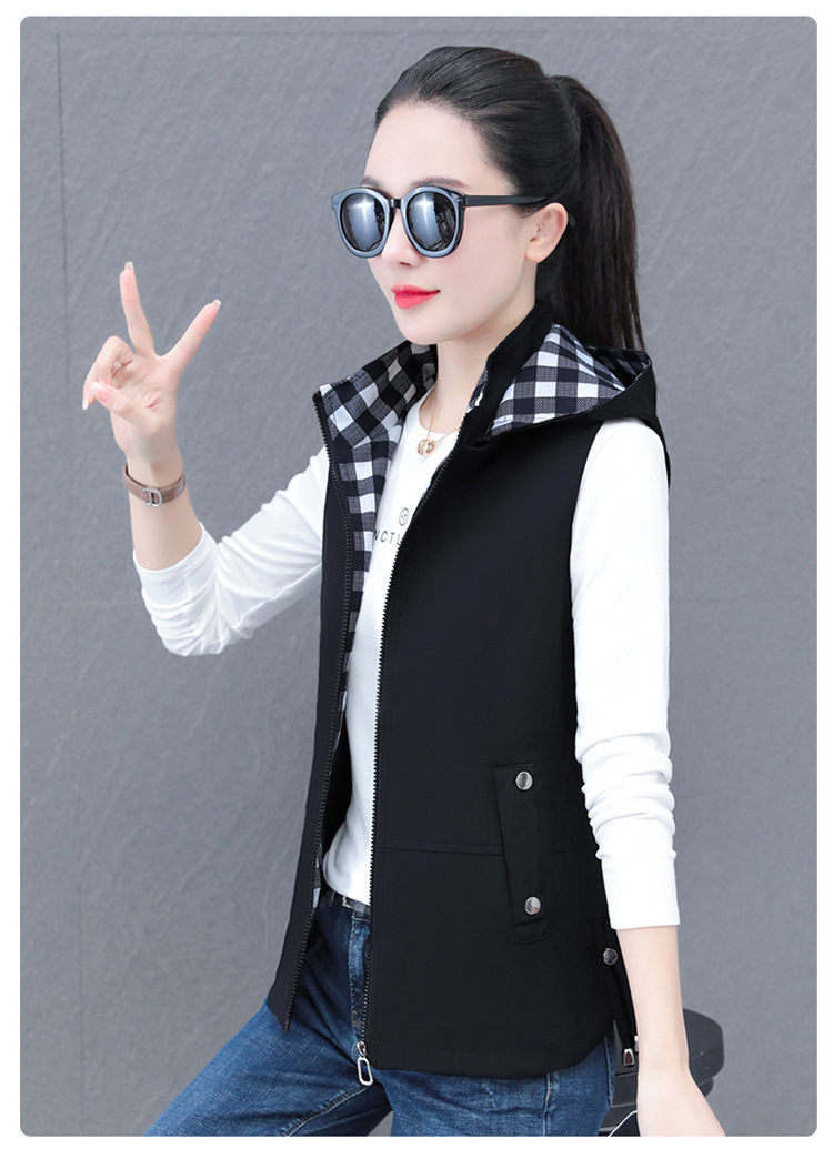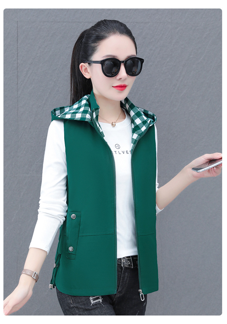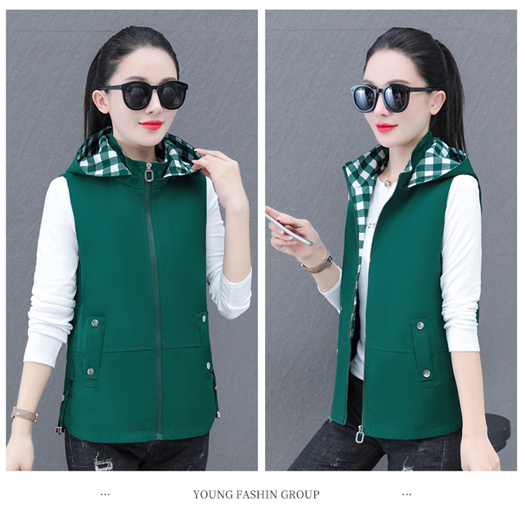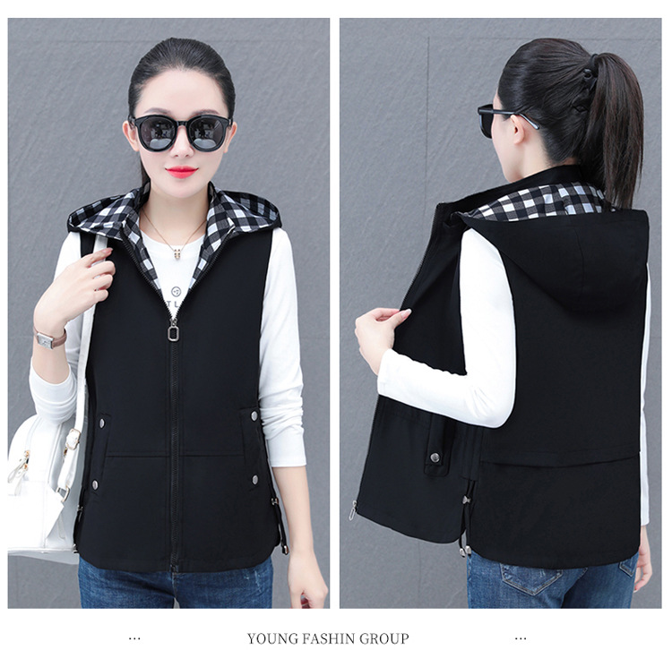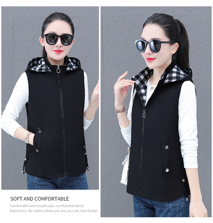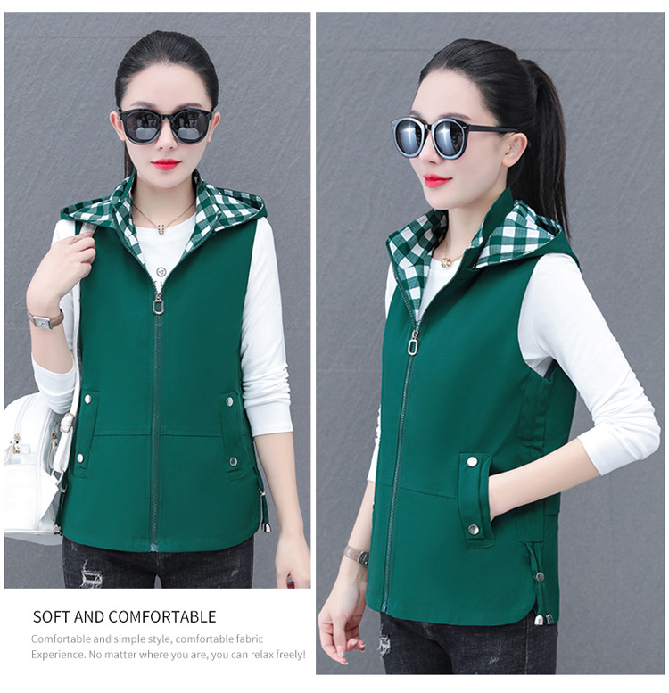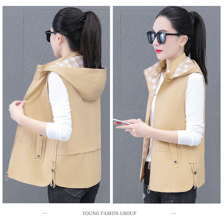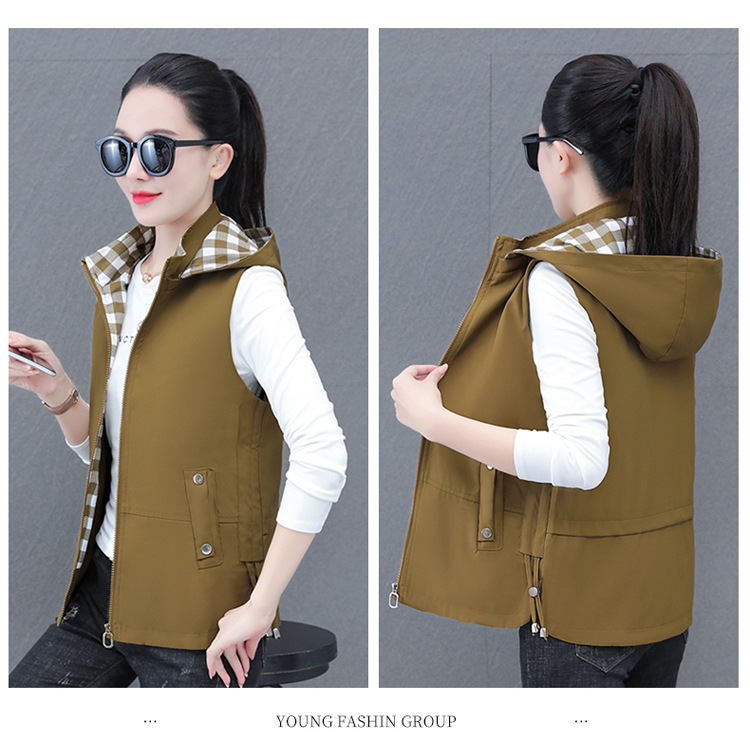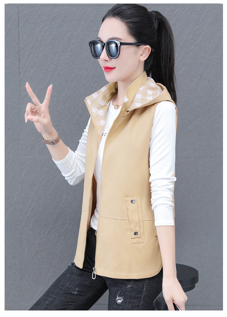 중년 엄마 유행 이동식 후드 얇은 조끼 여성을위한 봄과 가을 서양식 연령 감소 느슨한 슬림 핏 재킷