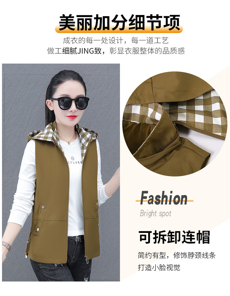 중년 엄마 유행 이동식 후드 얇은 조끼 여성을위한 봄과 가을 서양식 연령 감소 느슨한 슬림 핏 재킷스토어 가기