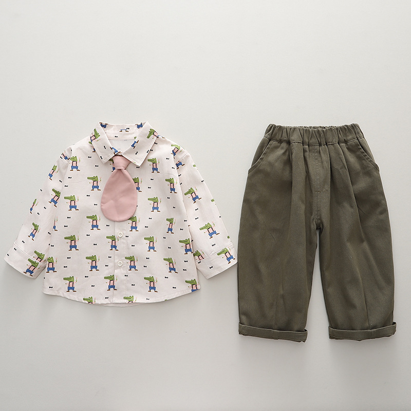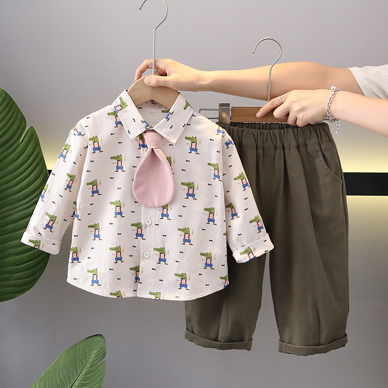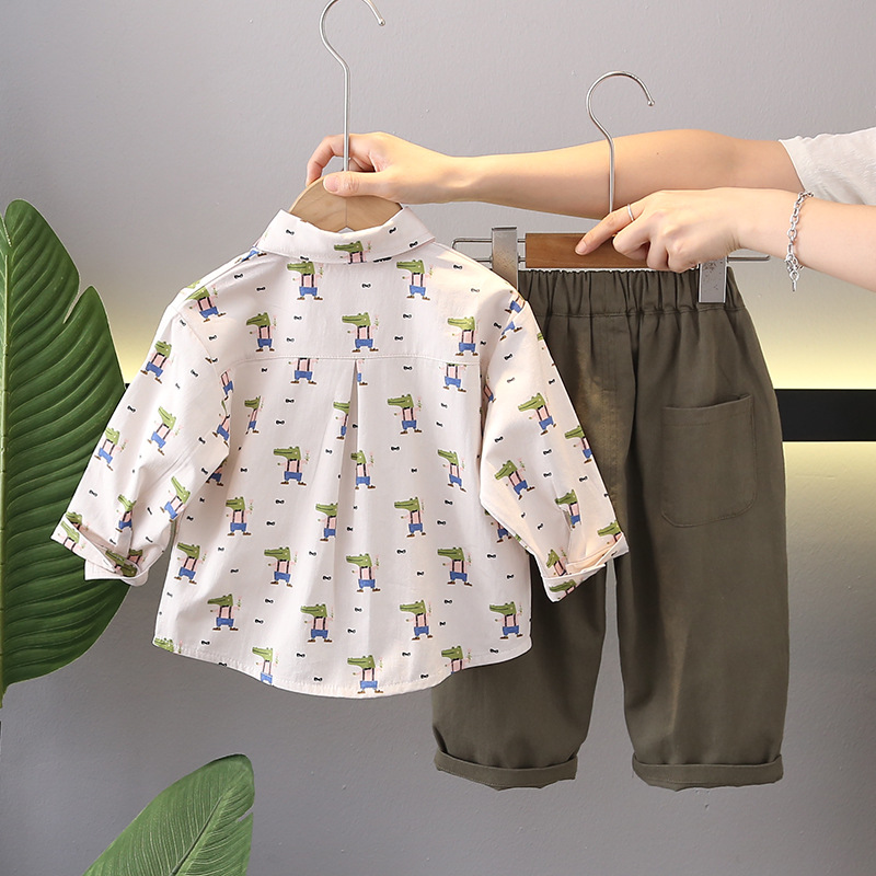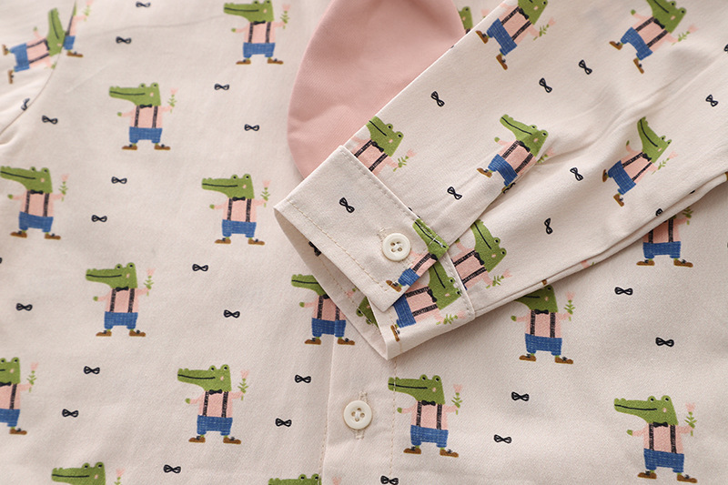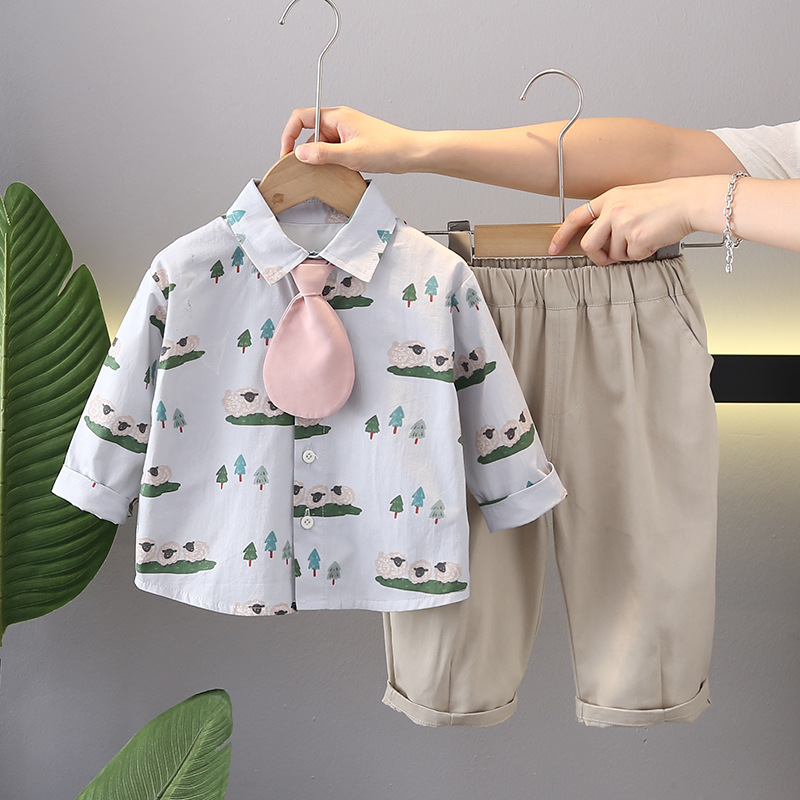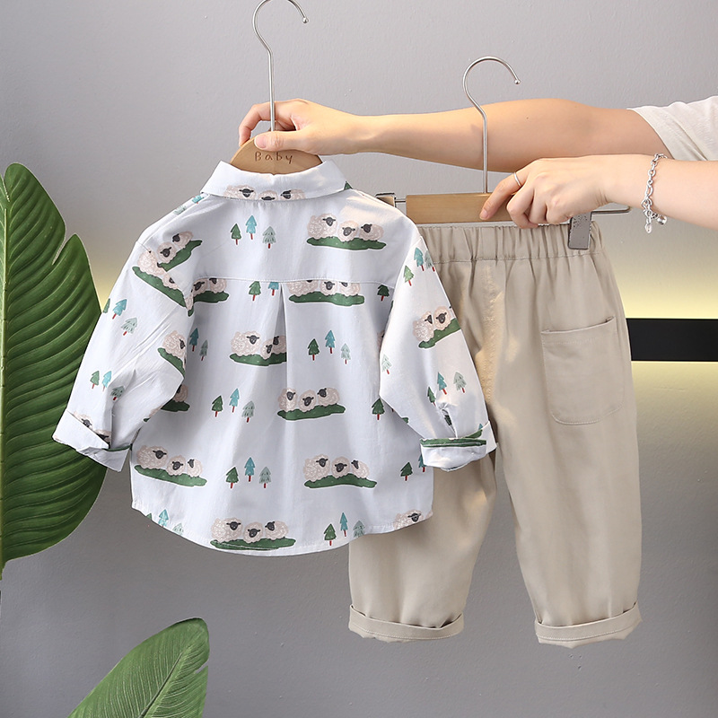 2024 년 새로운 도착 전체 인쇄 만화 긴 소매 셔츠 세트 가을 재킷 캐주얼 두 조각 봄 옷 소년 소녀