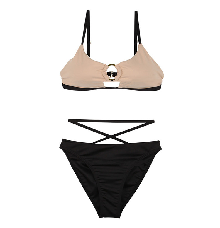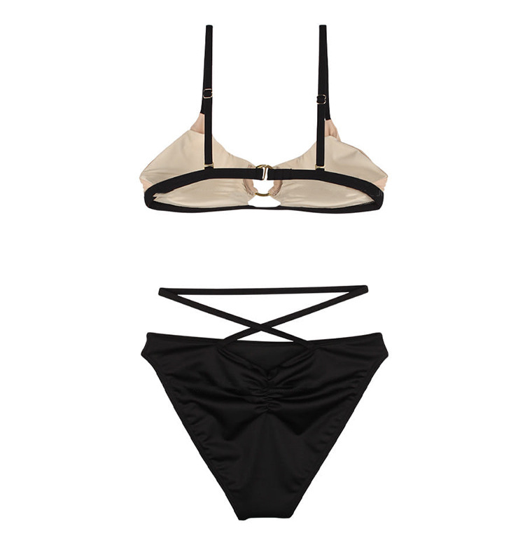 한국 섹시 백리스 블랙 온천 비키니 작은 가슴 푸쉬 업 높은 허리 배꼽 분할 수영복 여성 수영 수영복
