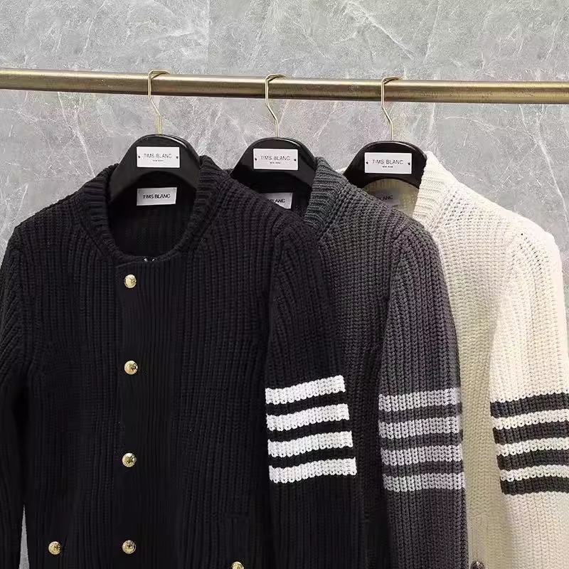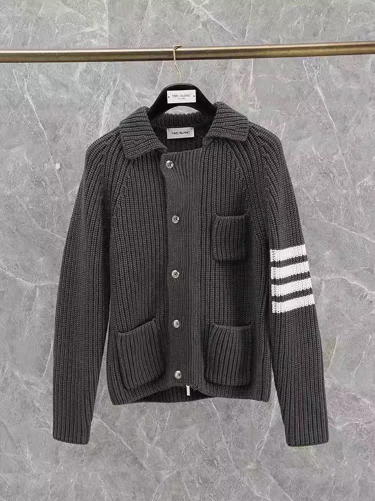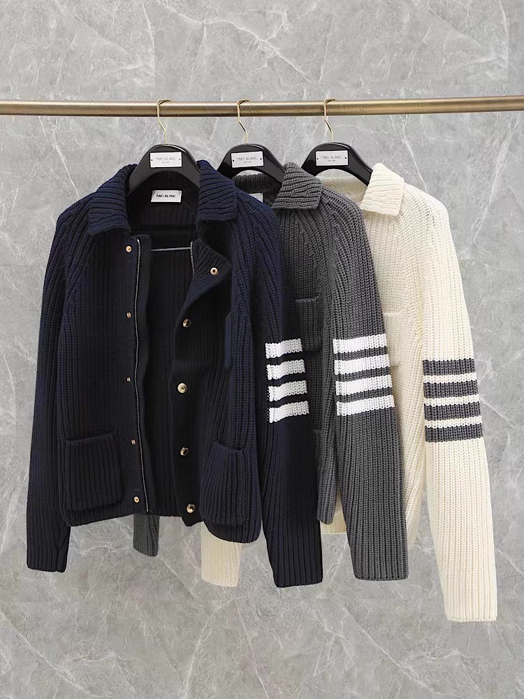 가을과 겨울 커플 스트라이프 카디건 남녀 같은 슬림 핏 지퍼 옷깃 남성용 올 매치 니트웨어 스웨터 재킷스토어 가기