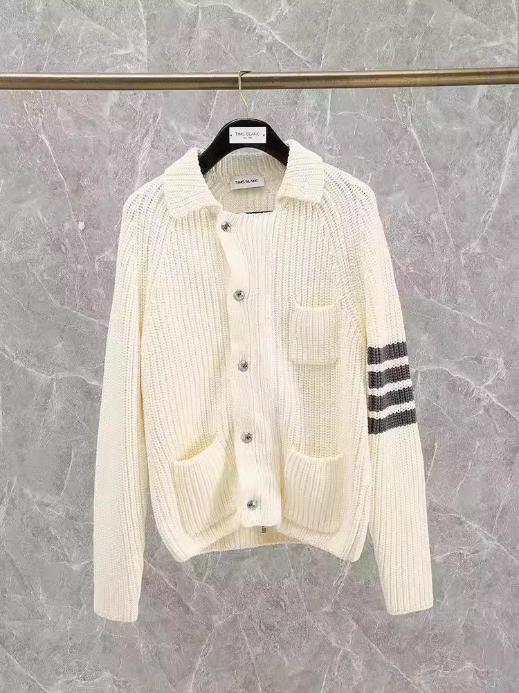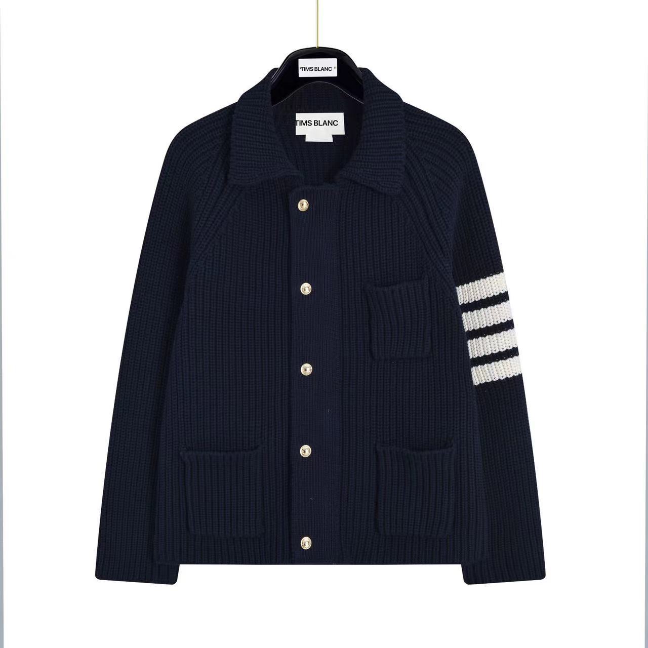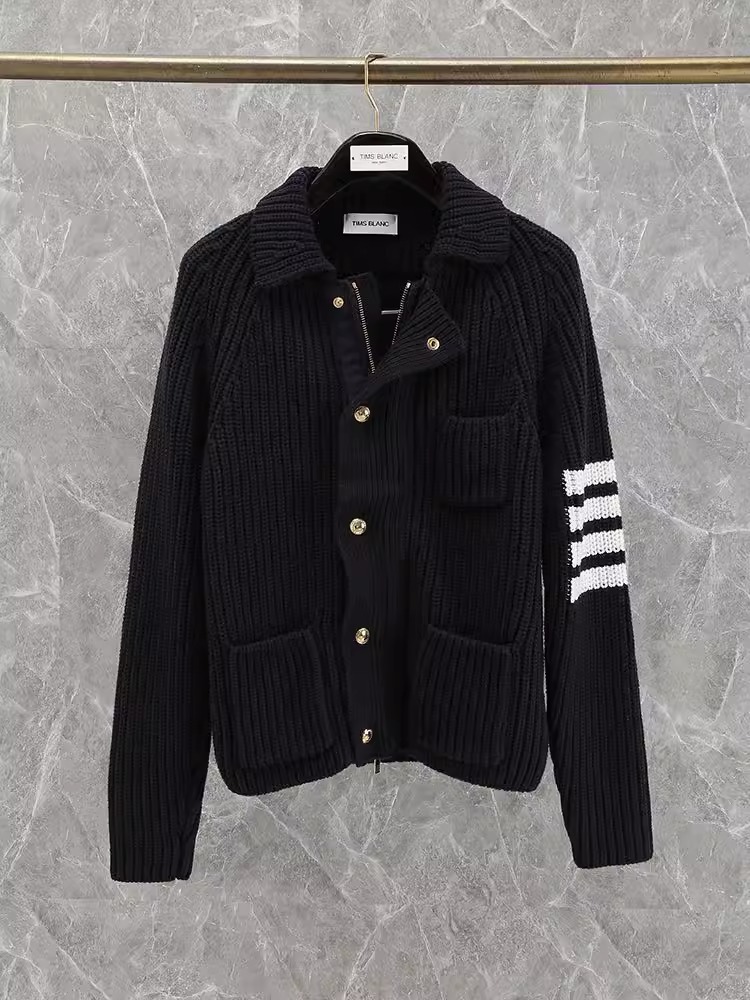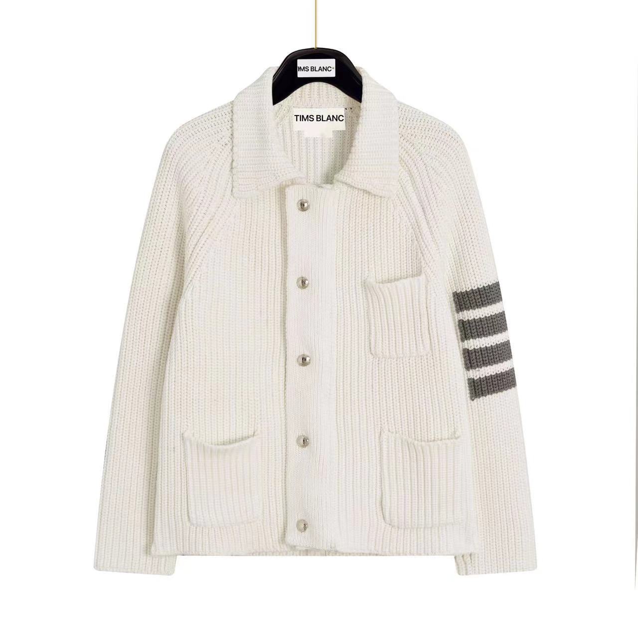 가을과 겨울 커플 스트라이프 카디건 남녀 같은 슬림 핏 지퍼 옷깃 남성용 올 매치 니트웨어 스웨터 재킷