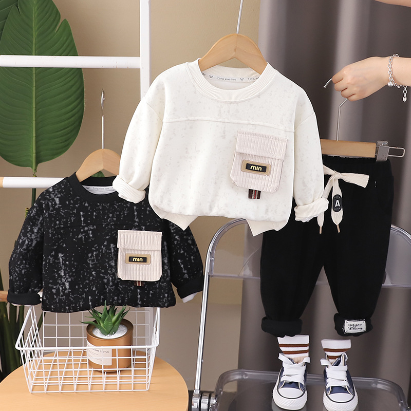 조수 팬 소년 가을 세트 2024 새로운 아동복 소년 2 종 아기 봄과 가을 아동복 도매스토어 가기