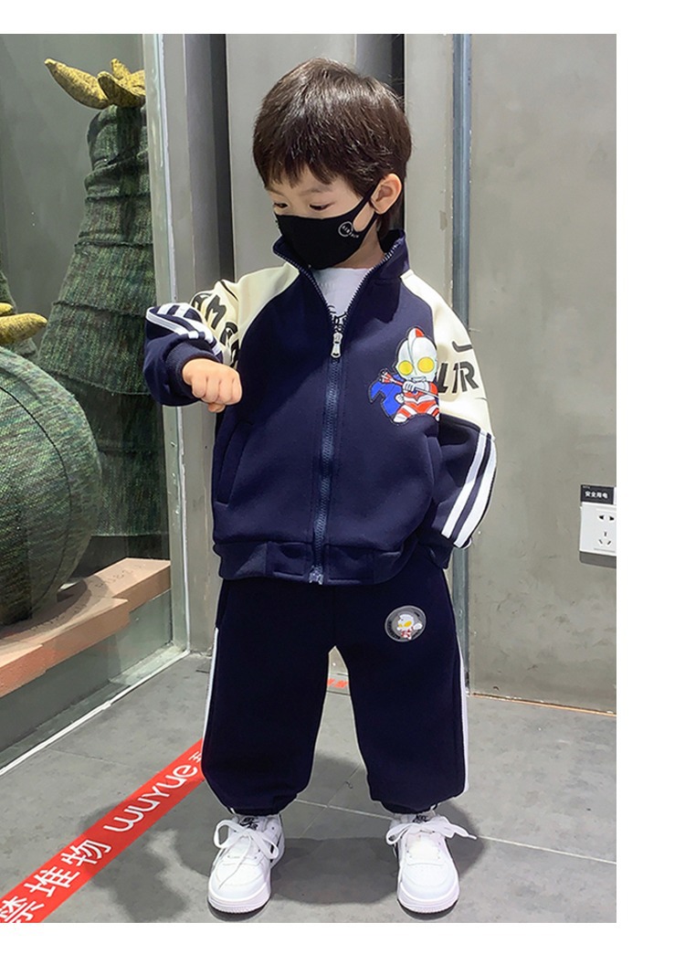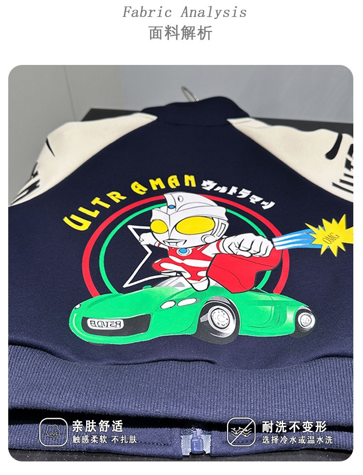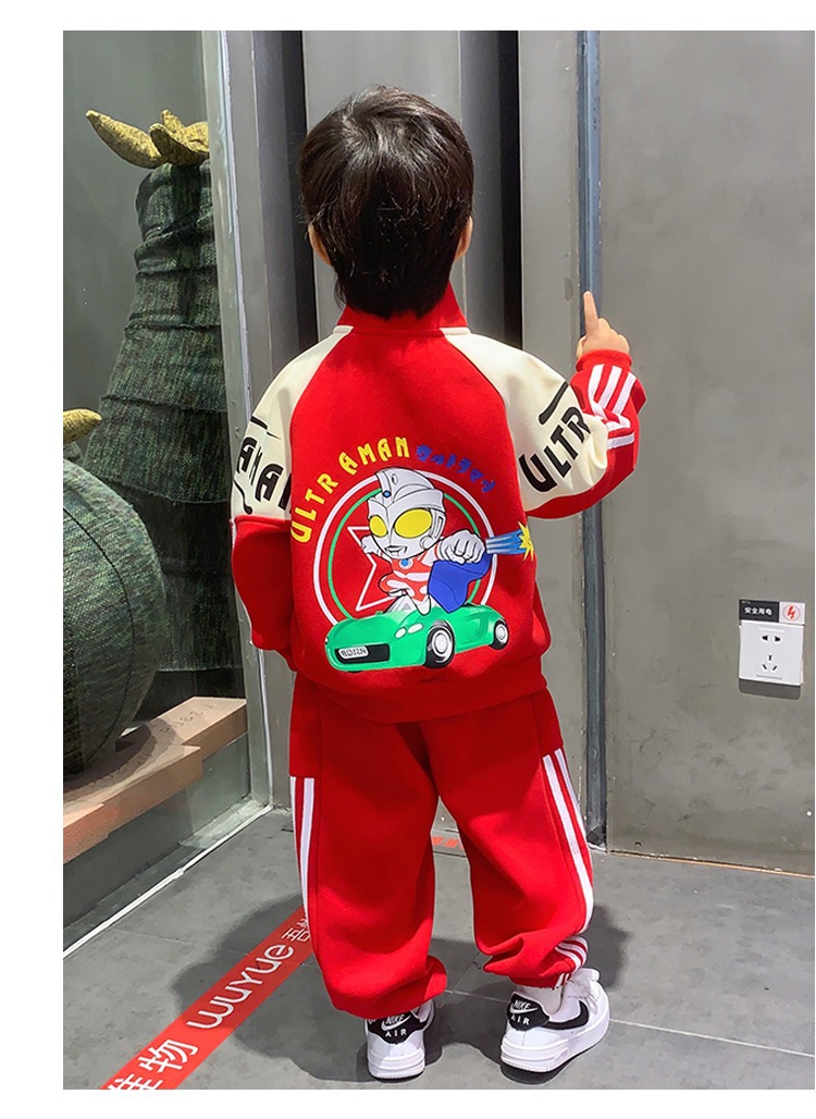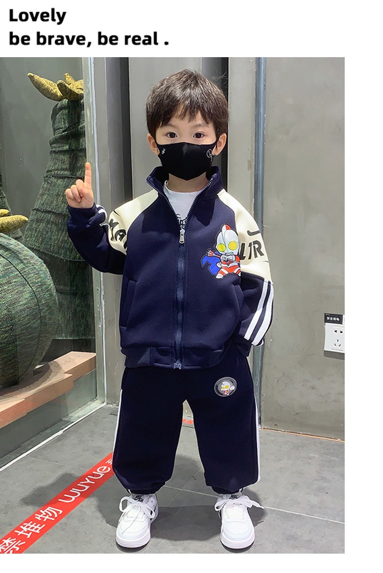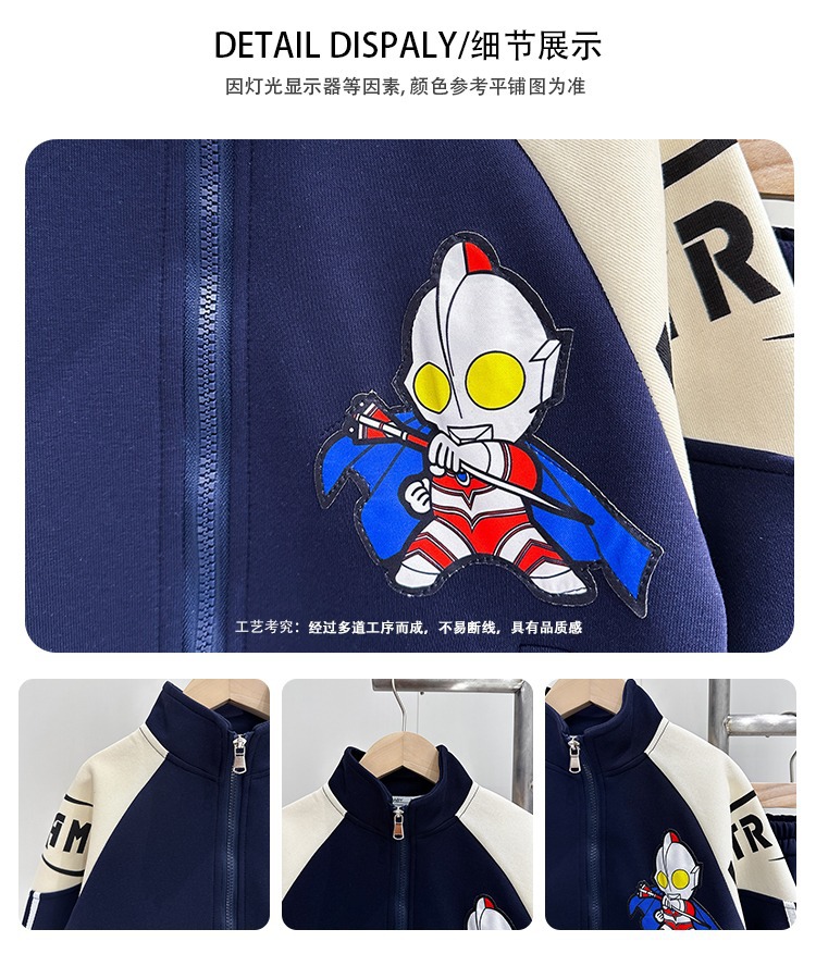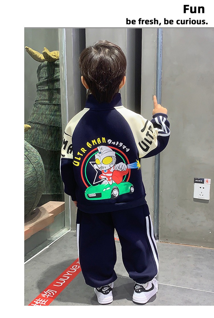 울트라 맨 의류 소년 세트 2024 새로운 잘 생긴 어린이 기모 재킷 가을과 겨울 카디건 스포츠 투피스 세트스토어 가기