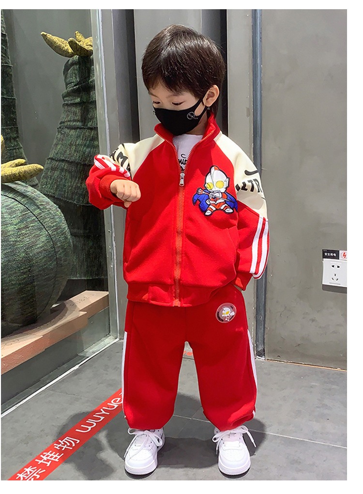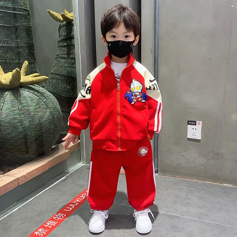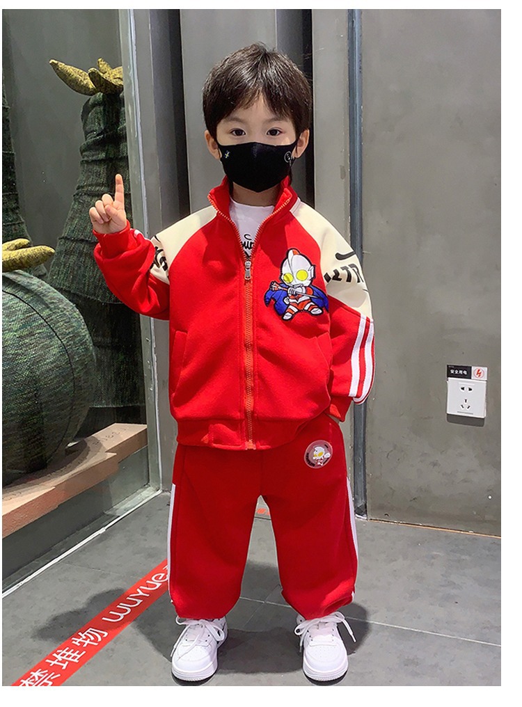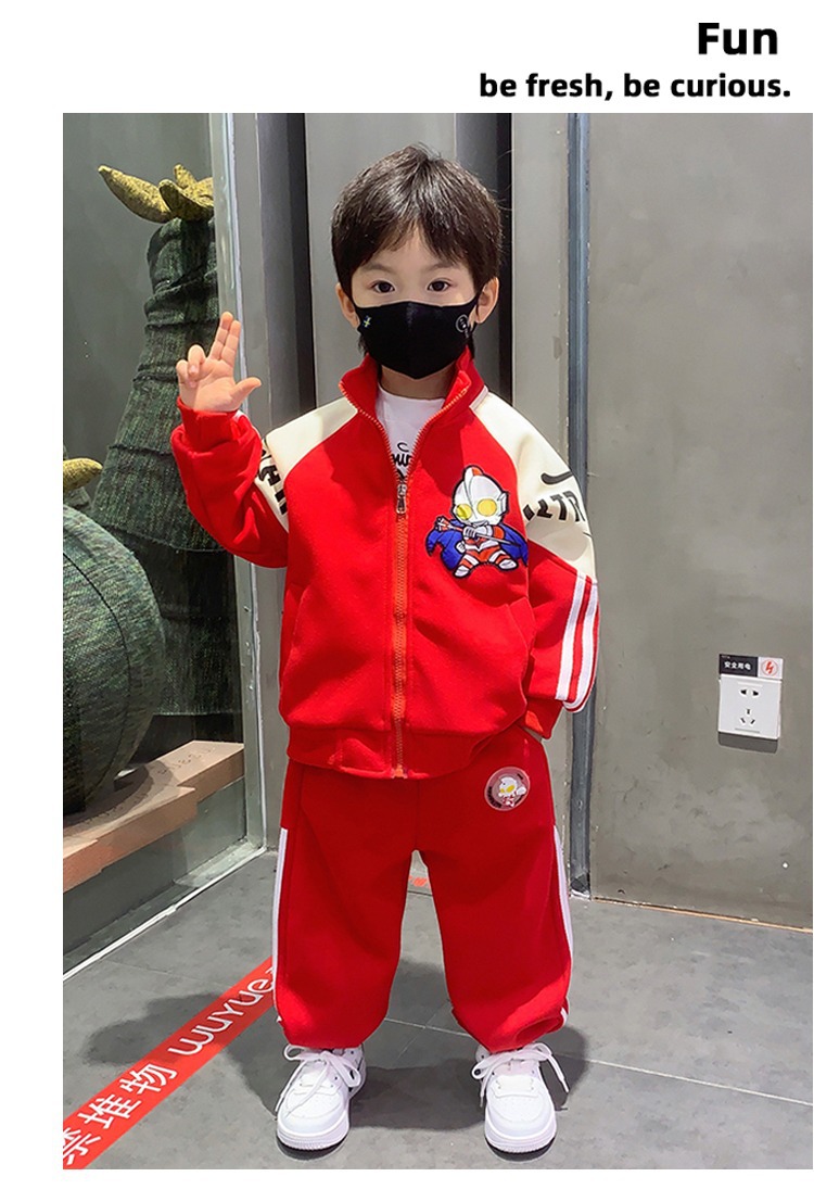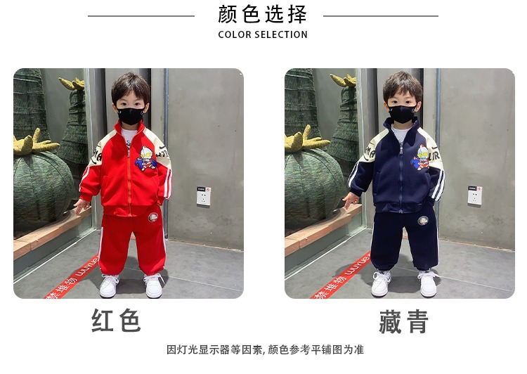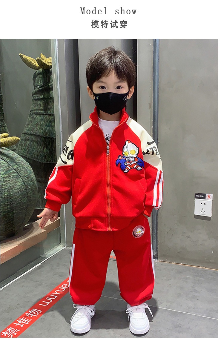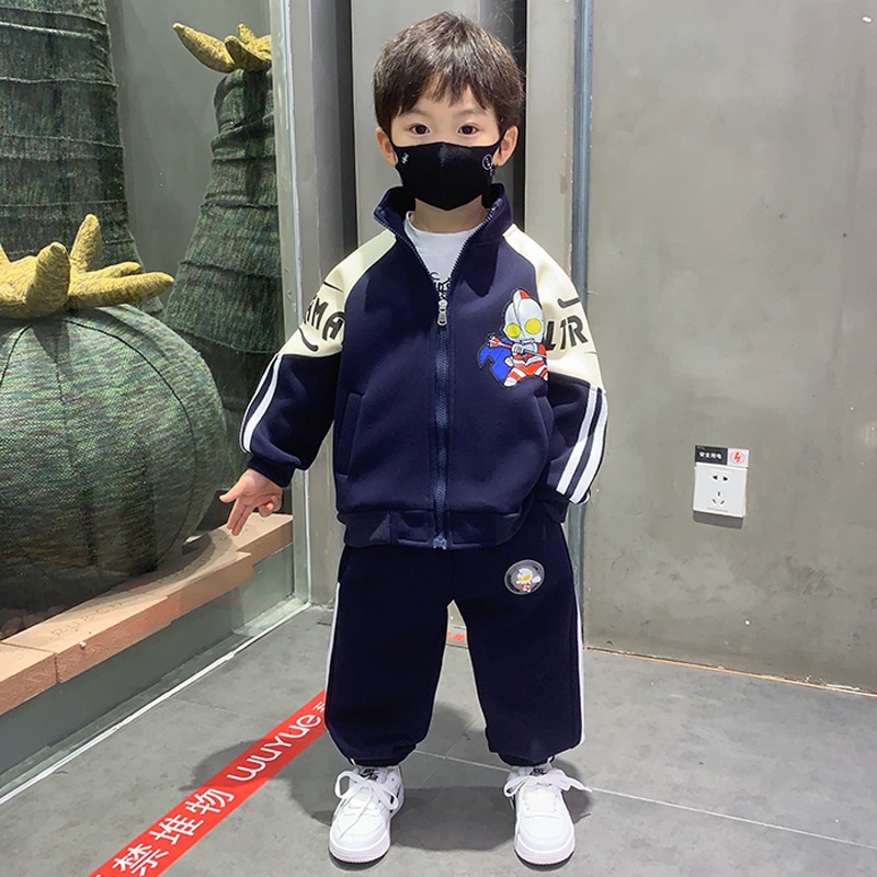 울트라 맨 의류 소년 세트 2024 새로운 잘 생긴 어린이 기모 재킷 가을과 겨울 카디건 스포츠 투피스 세트스토어 가기