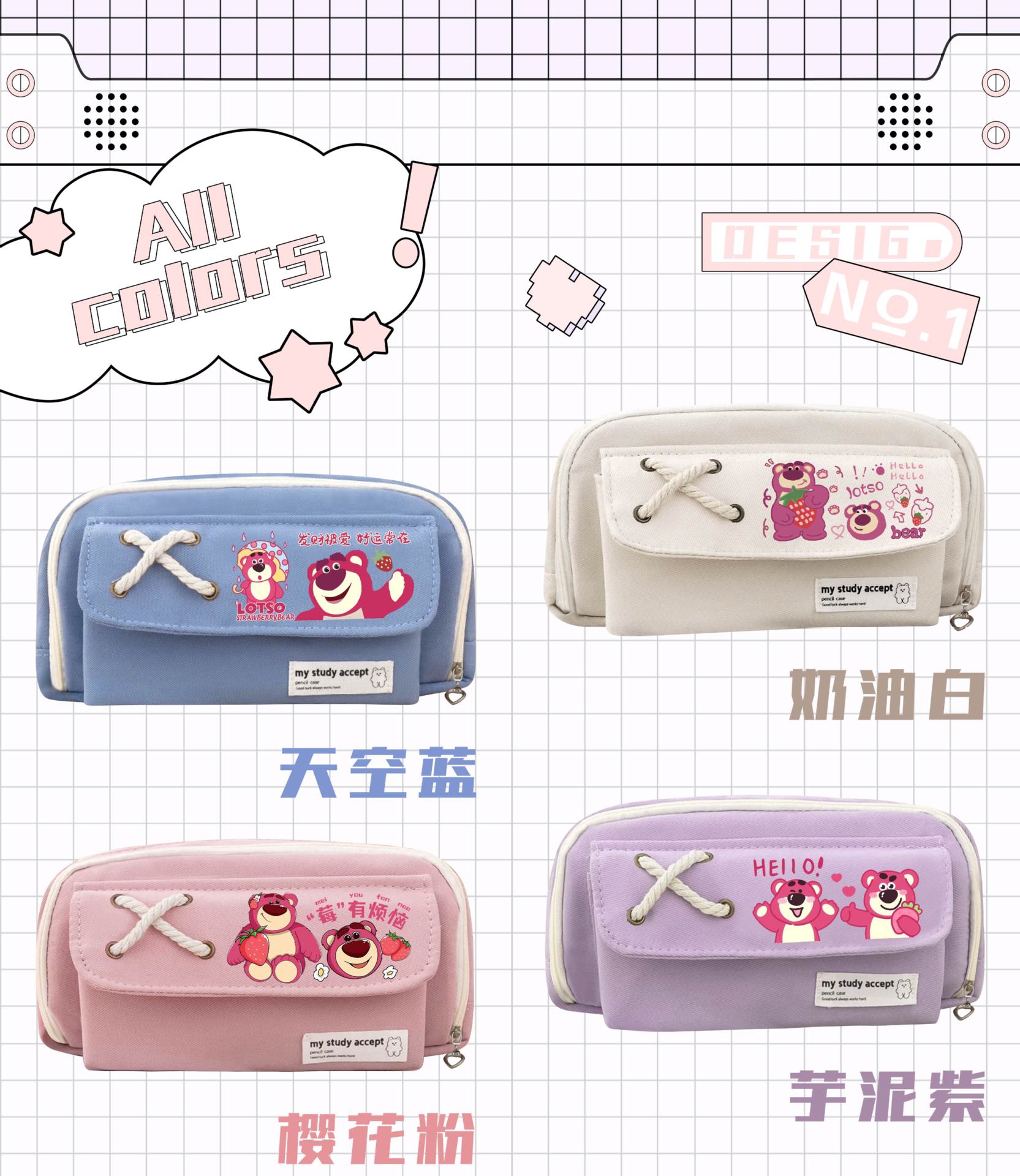 딸기 곰 귀여운 만화 연필 가방 소녀 높은 색상 가치 큰 용량 새로운 스타일 연필 케이스 학생 4 층 연필 케이스스토어 가기