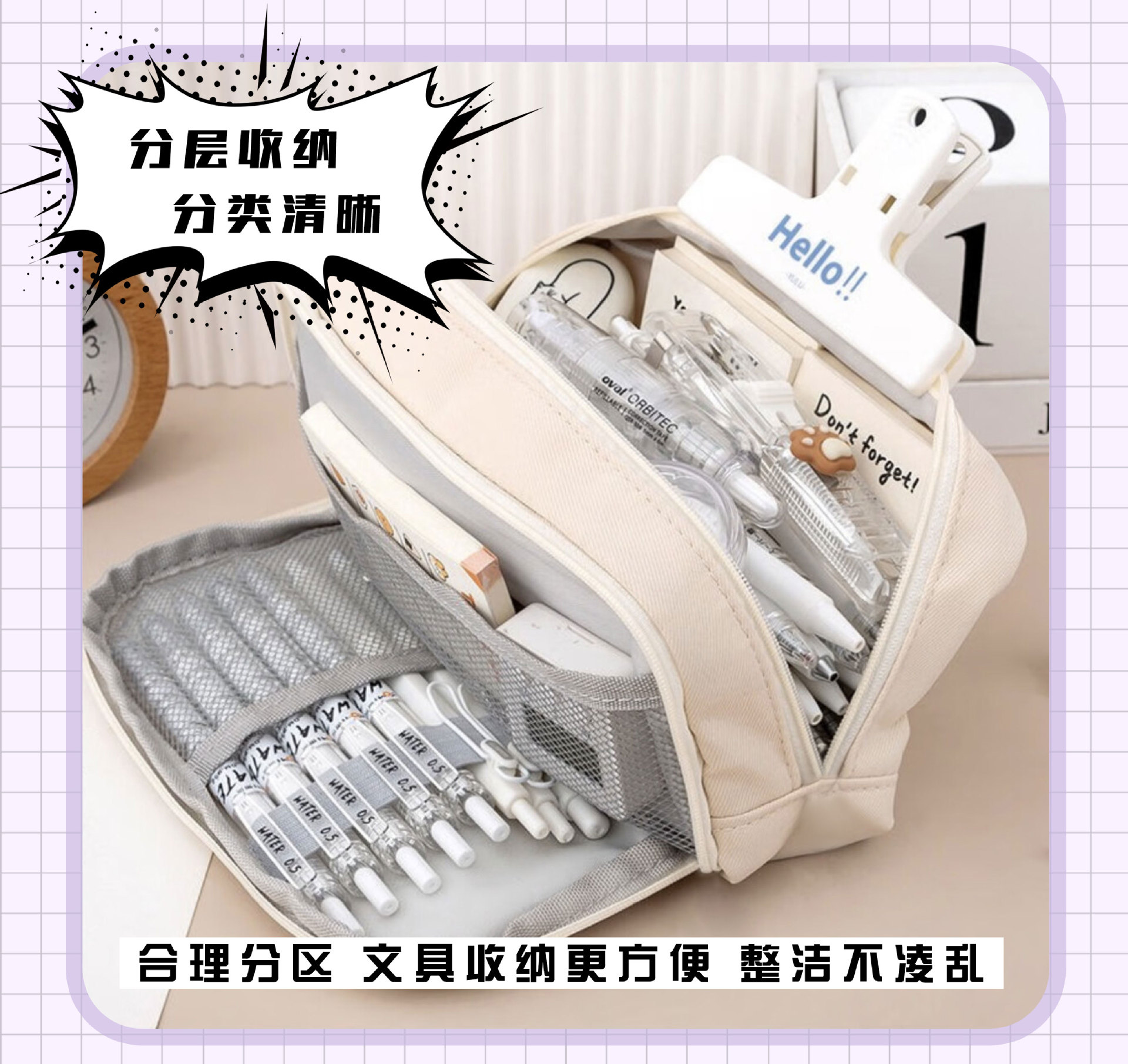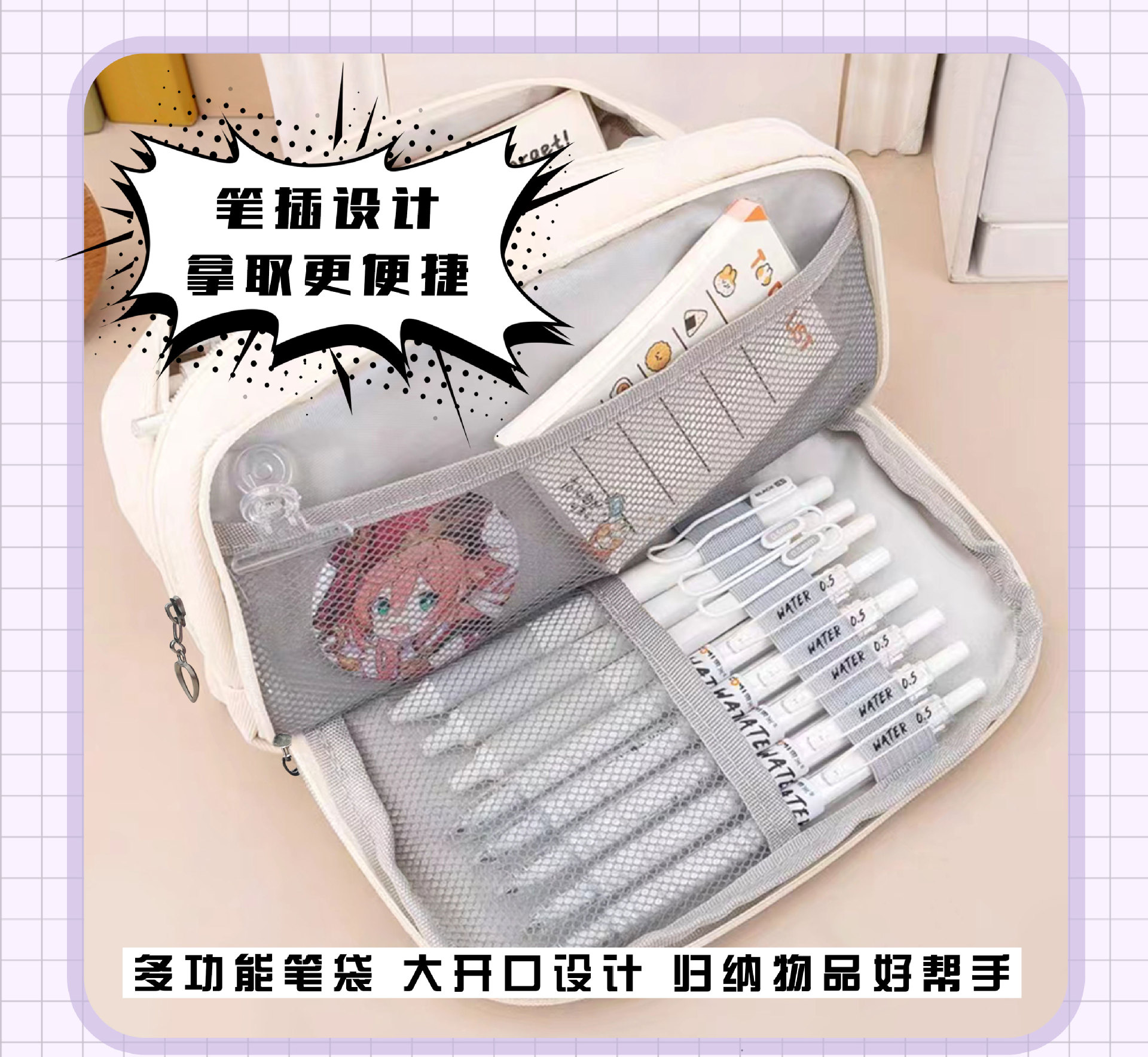 딸기 곰 귀여운 만화 연필 가방 소녀 높은 색상 가치 큰 용량 새로운 스타일 연필 케이스 학생 4 층 연필 케이스