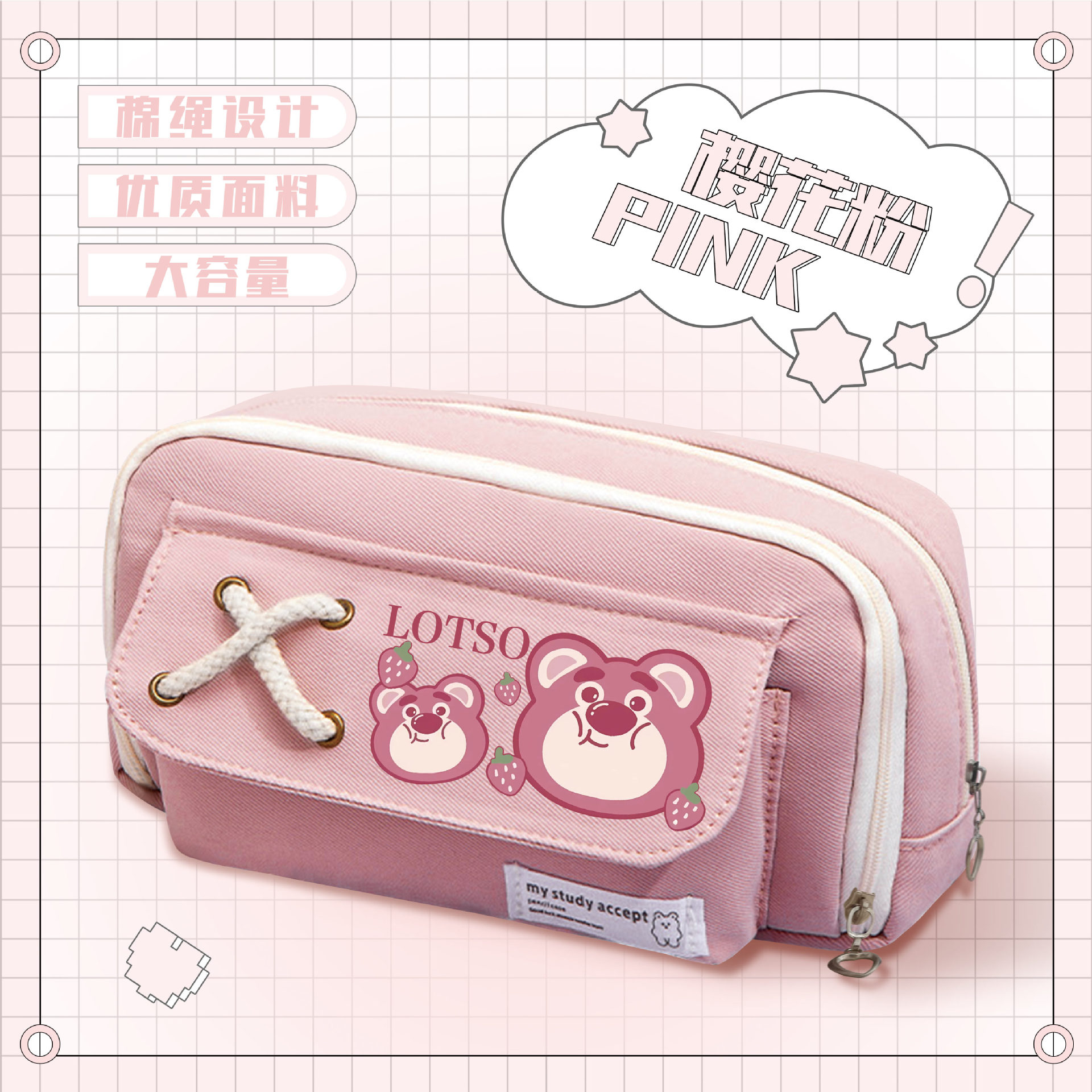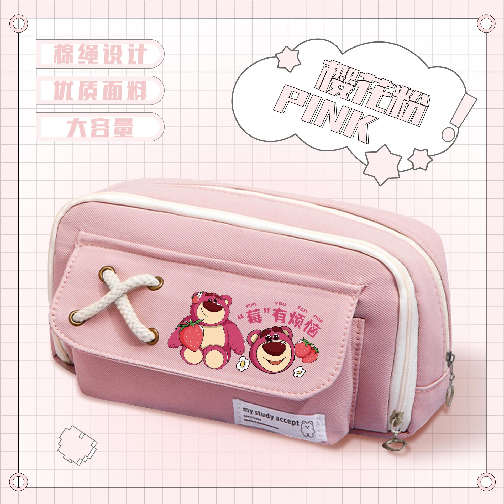 • 스트로베리베어 핑크 스트랩 필통-02