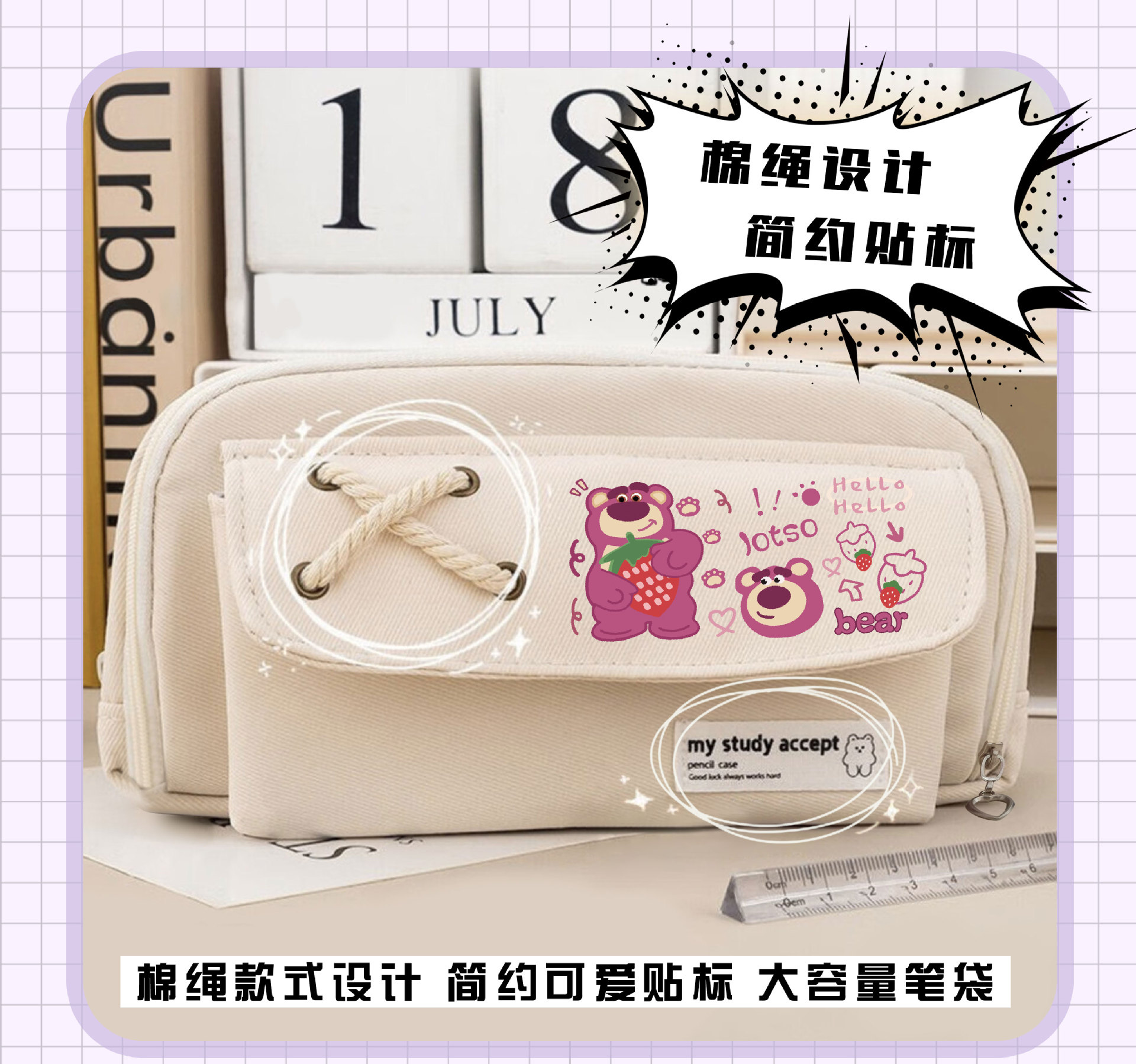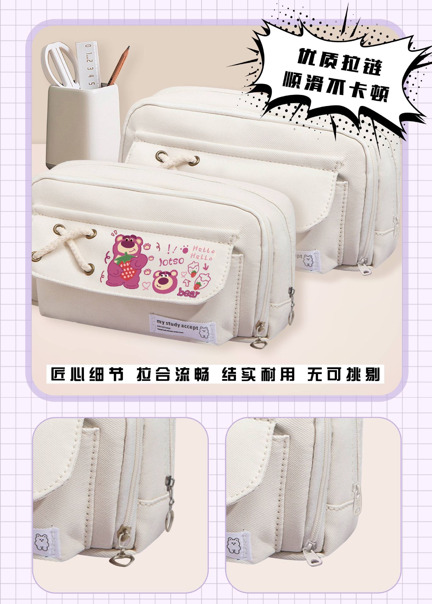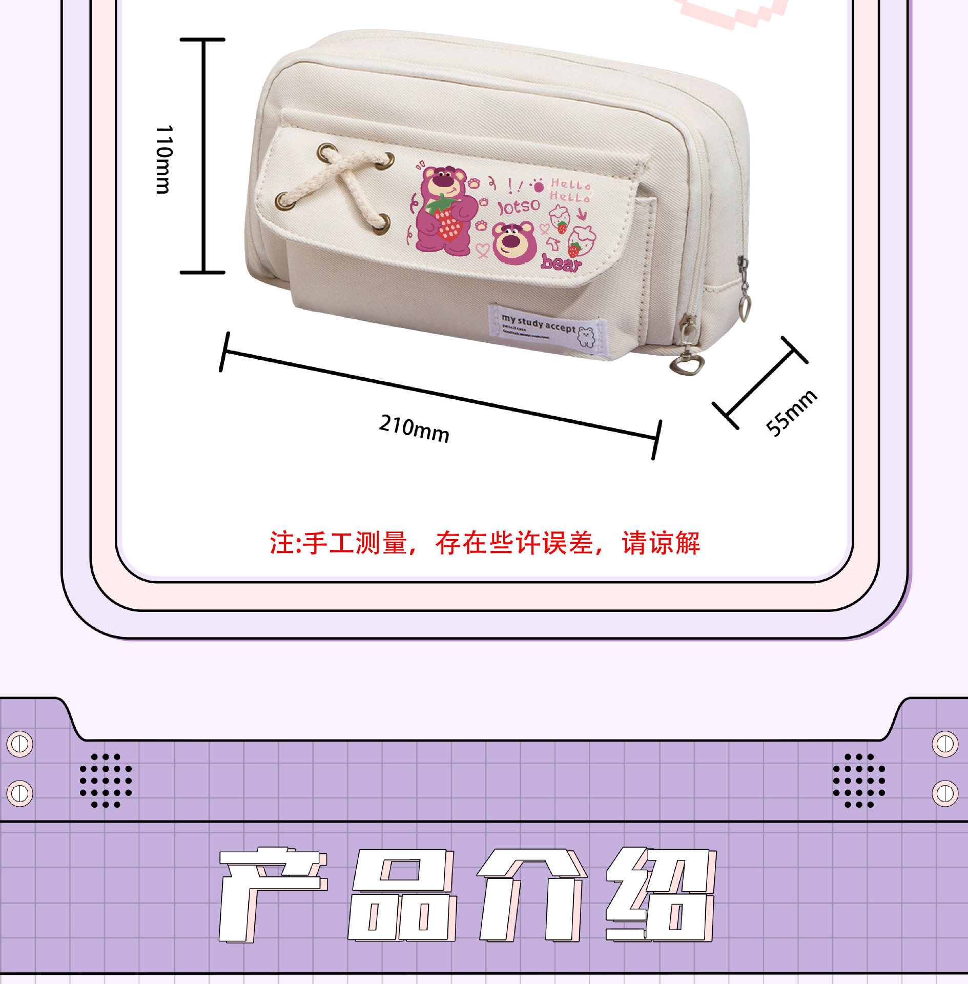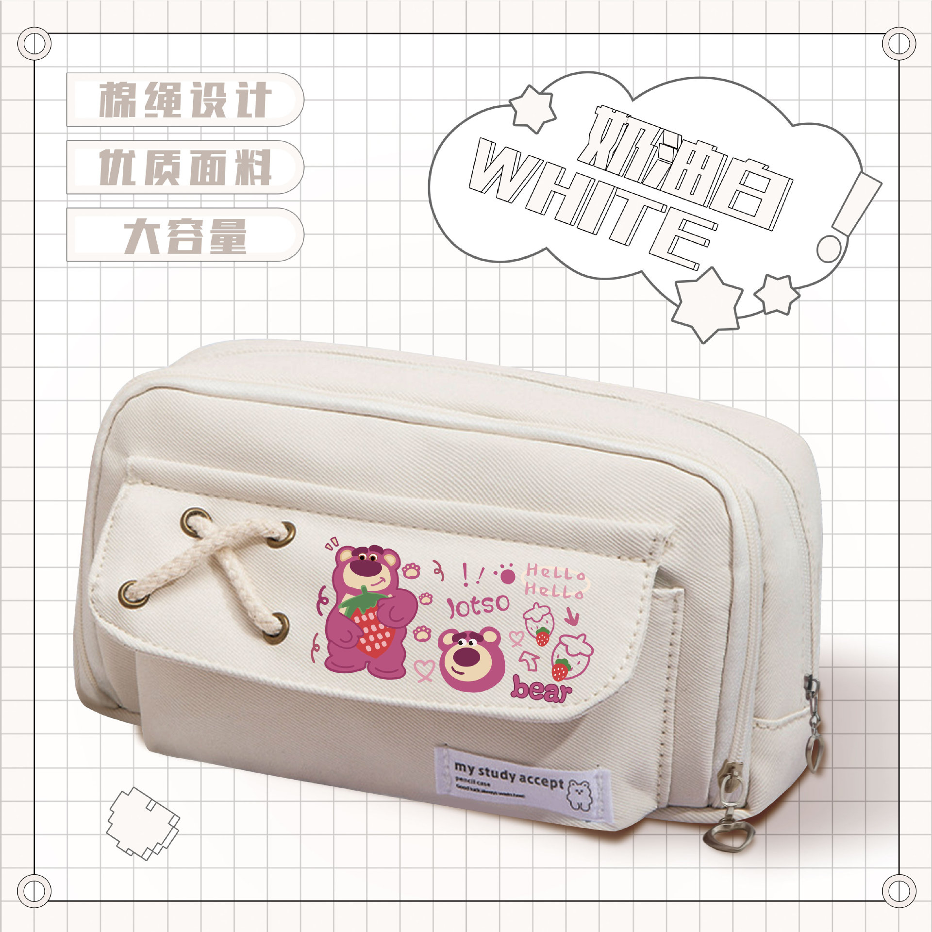 • 딸기곰 화이트 스트랩 필통-09