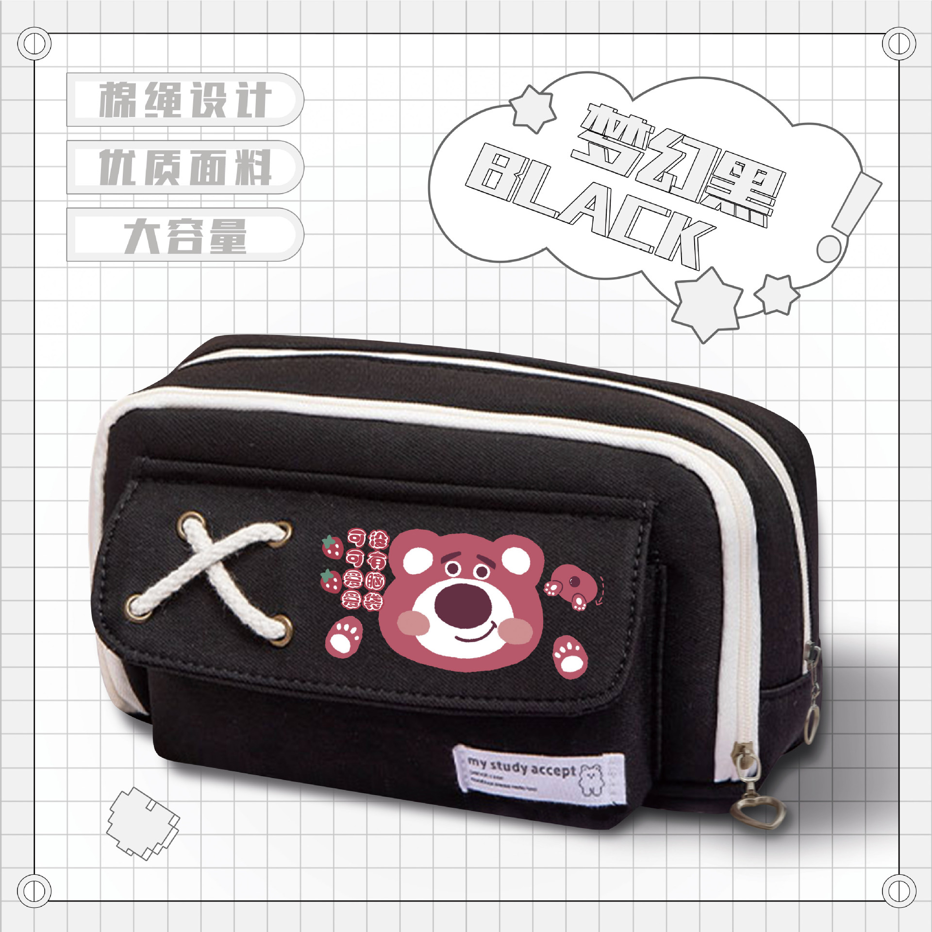 • 딸기곰 블랙스트랩 필통-05