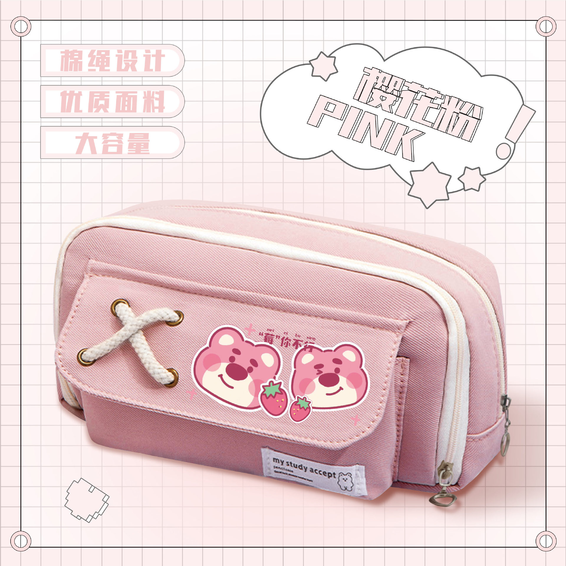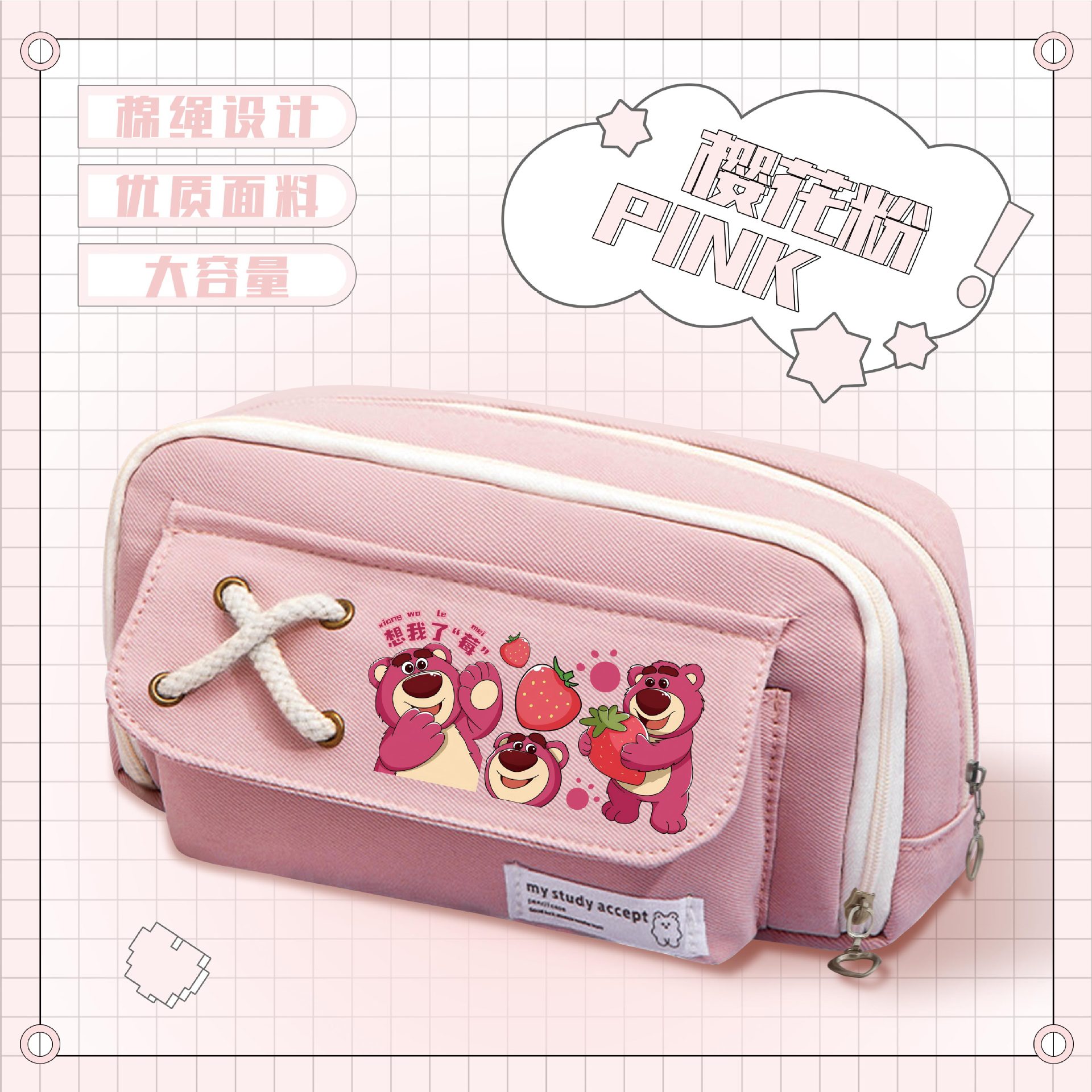 • 스트로베리베어 핑크 스트랩 필통-01