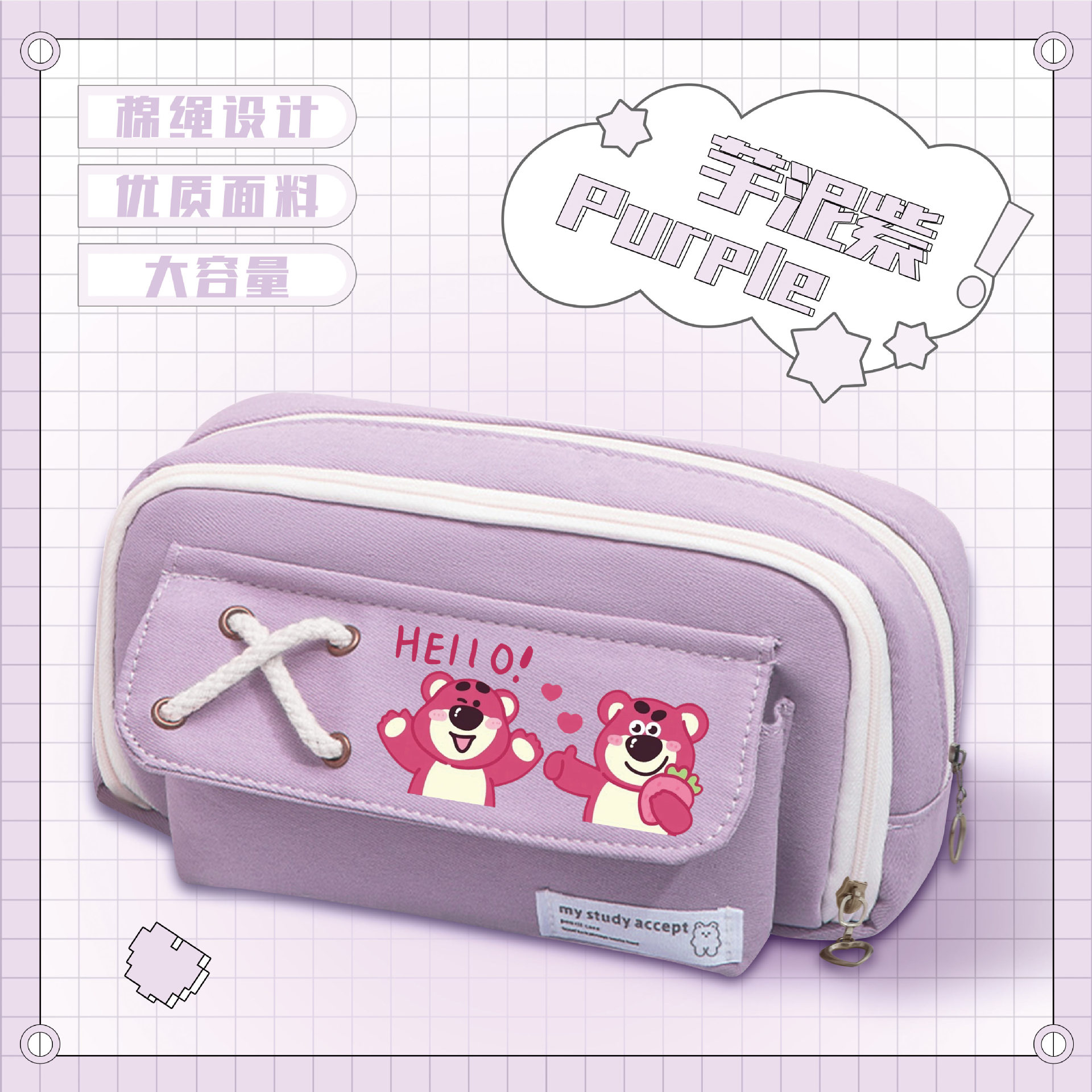 • 딸기곰 보라색 스트랩 필통-08