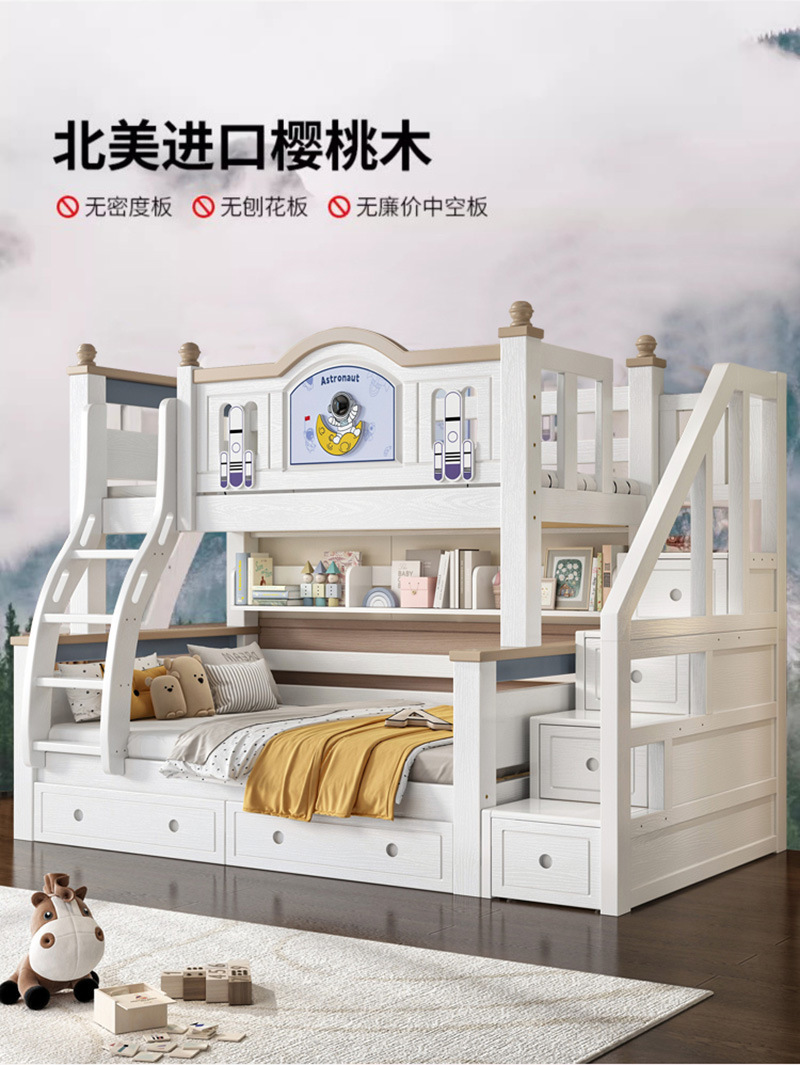 모든 단단한 나무 침대 침대 이층 침대 이층 침대 높은 침대 및 낮은 침대 다기능 2 층 소년 어린이 침대 도매