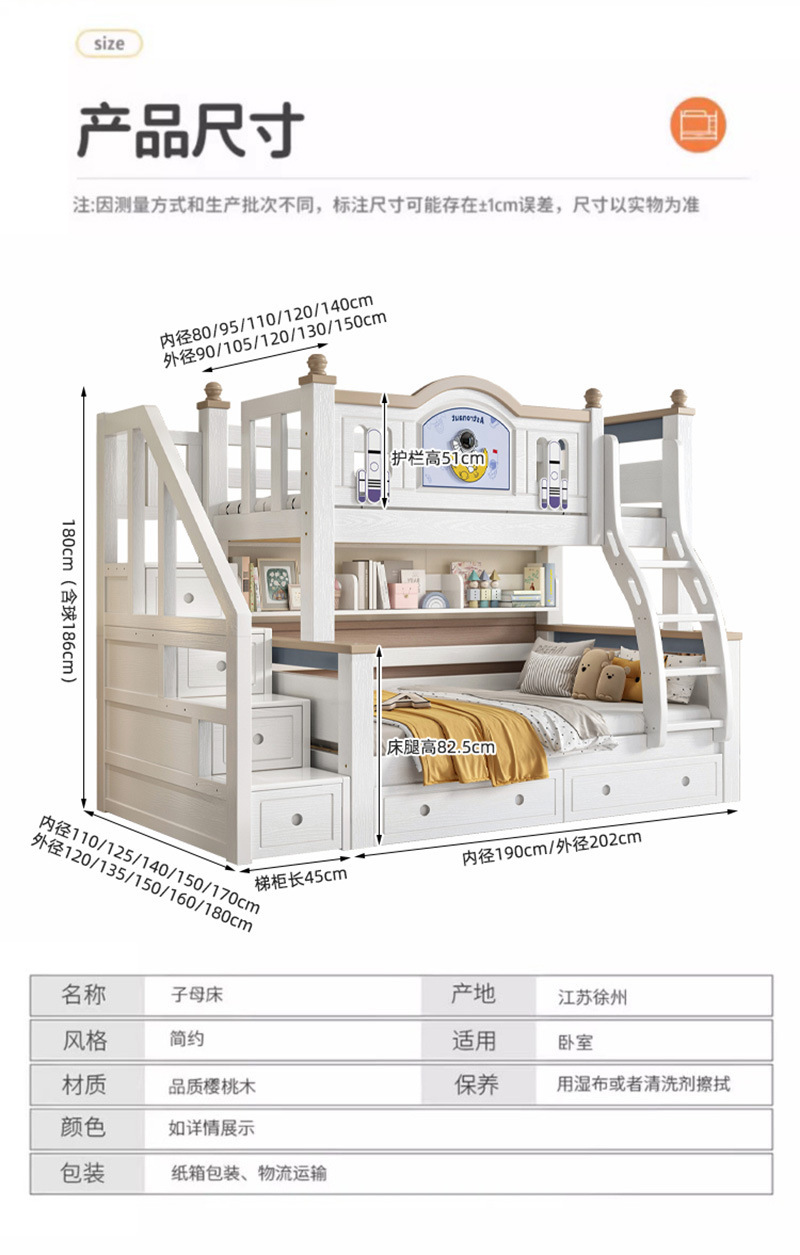 • 이중 사다리 모델 상부 침대 150CM 하부 침대 180CM