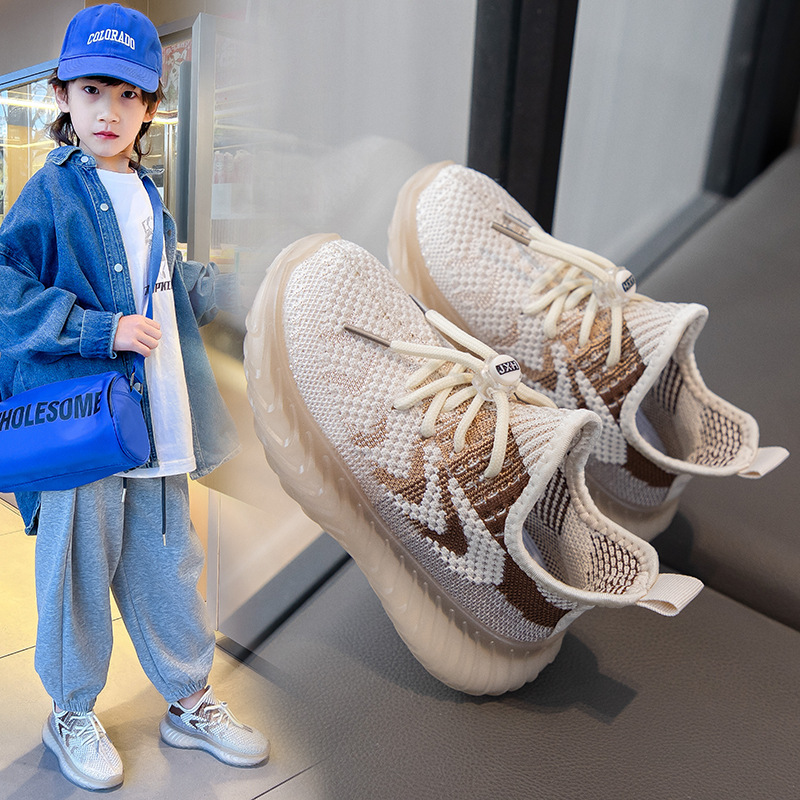 봄과 여름 2024 부드러운 바닥 미끄럼 방지 어린이 플라이 짠 신발 소녀 코코넛 신발 통기성 메쉬 소년 캐주얼 신발 도매