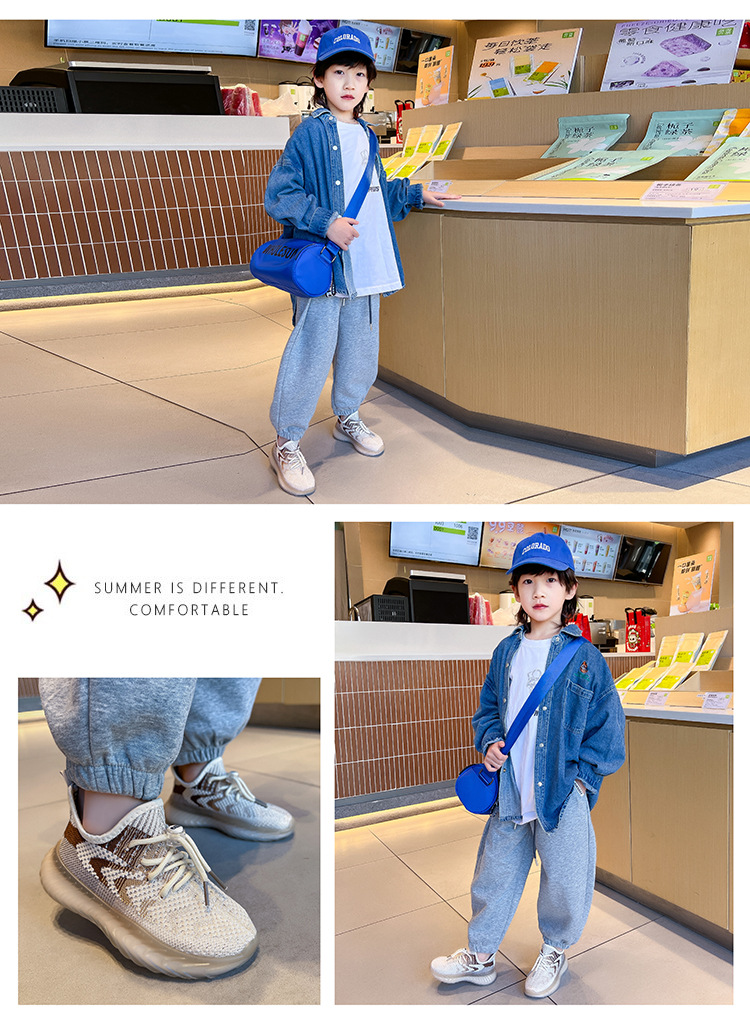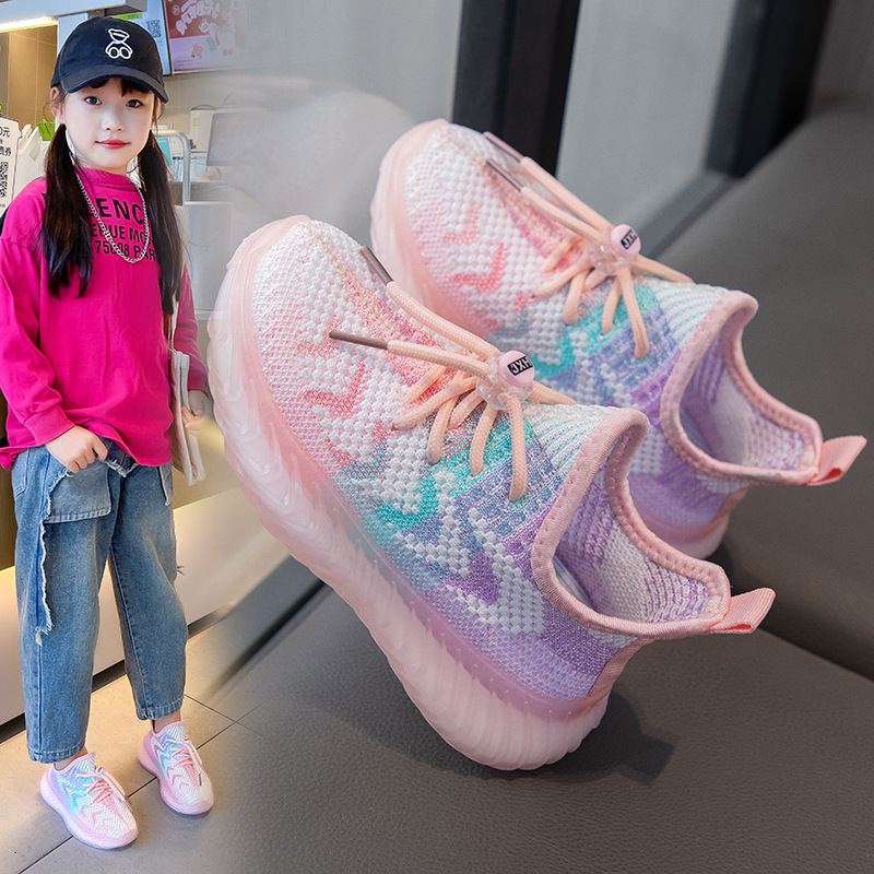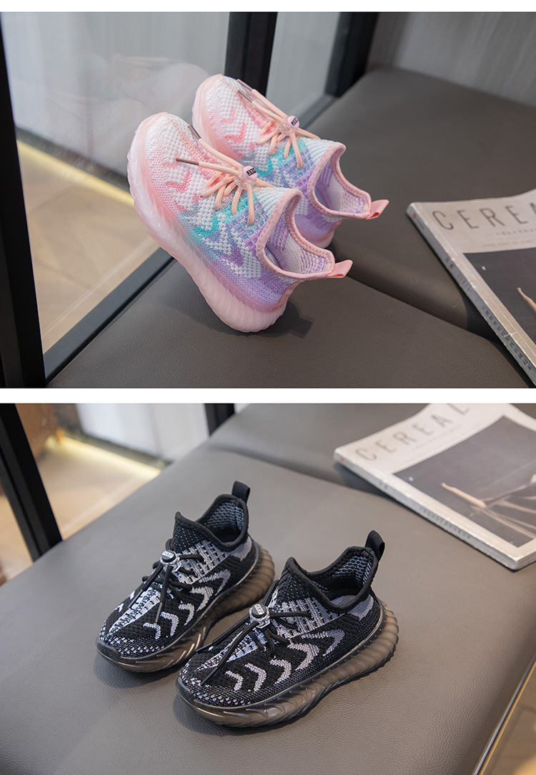봄과 여름 2024 부드러운 바닥 미끄럼 방지 어린이 플라이 짠 신발 소녀 코코넛 신발 통기성 메쉬 소년 캐주얼 신발 도매스토어 가기