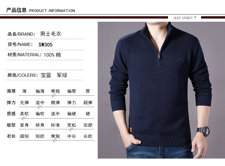 JEEPSPIRIT 스웨터 가을과 겨울 남성면 풀오버 스웨터 코트 305스토어 가기