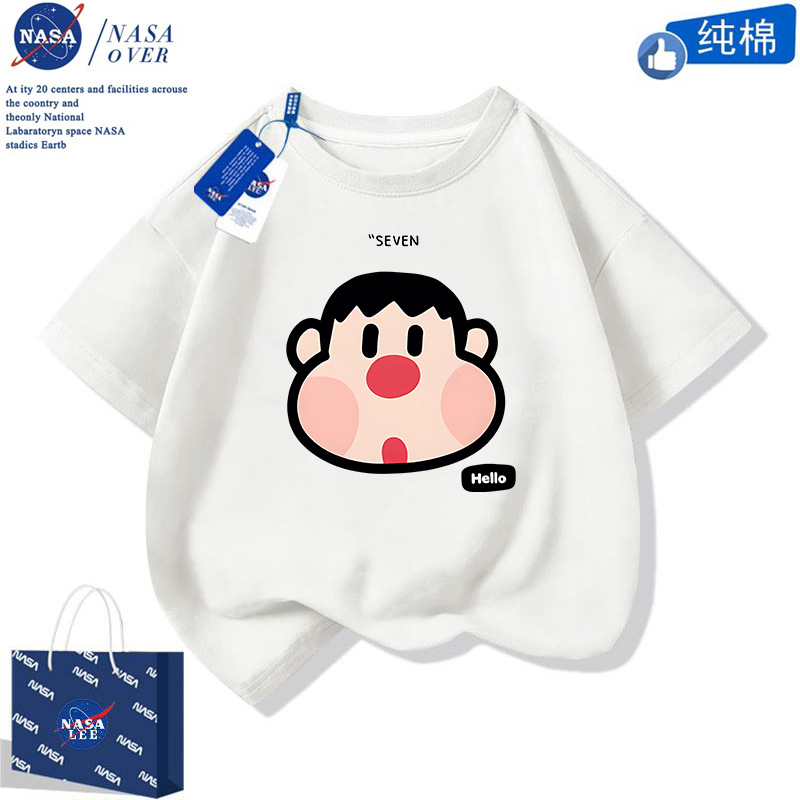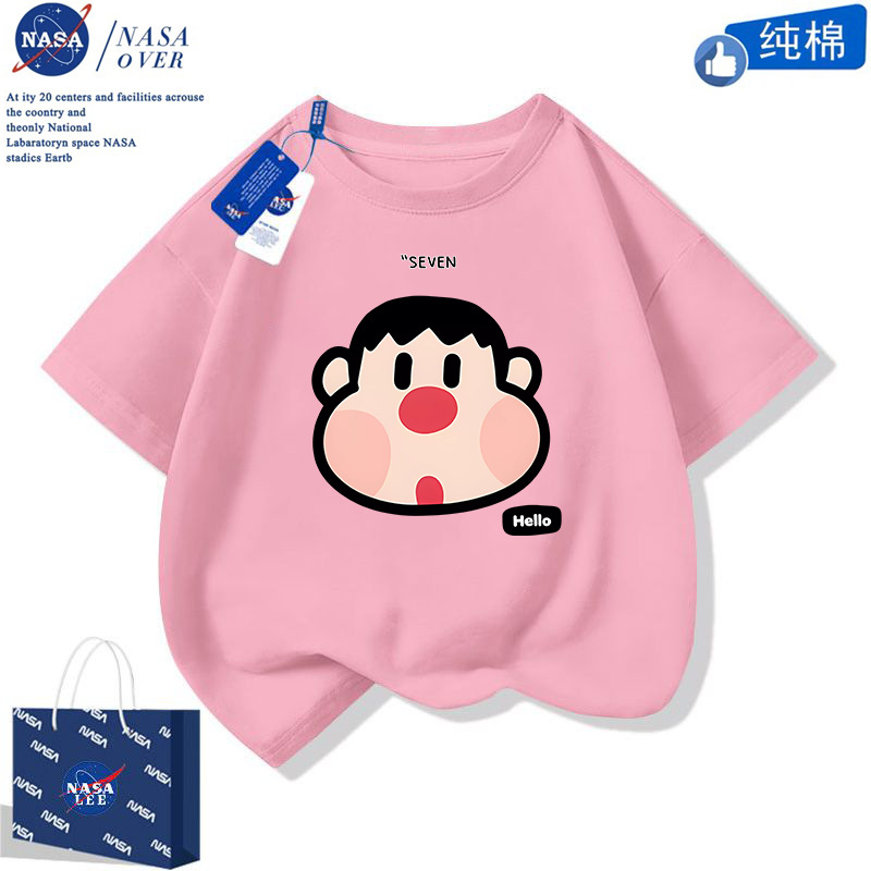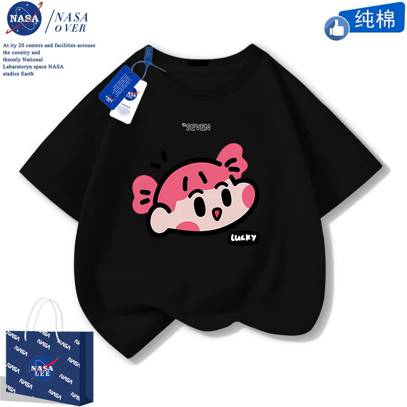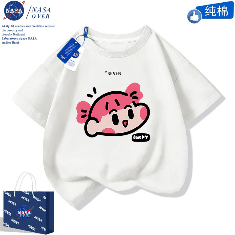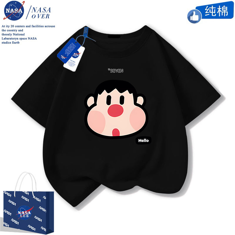 NASA 귀여운 니니 남녀 면 티셔츠 2024 여름 만화 반팔 유행 반소매 중대형 어린이 탑스토어 가기