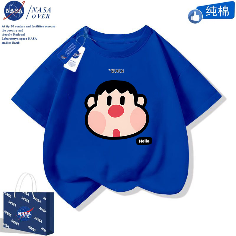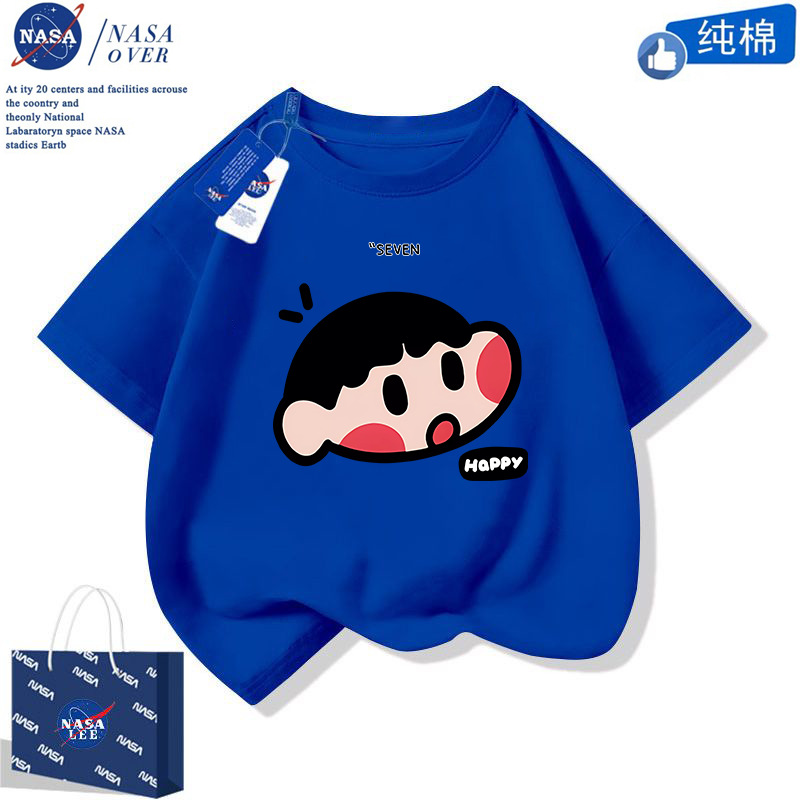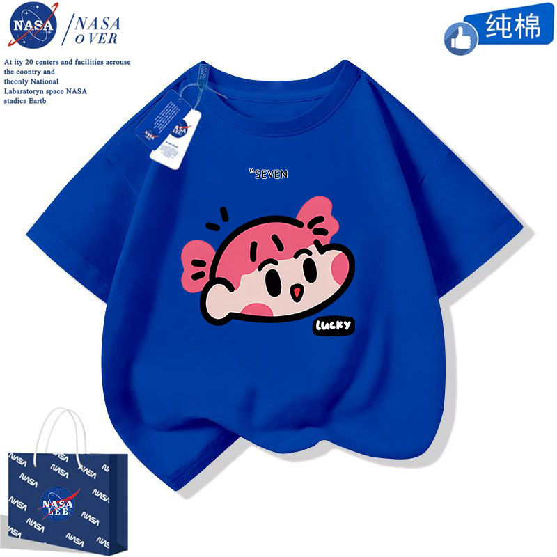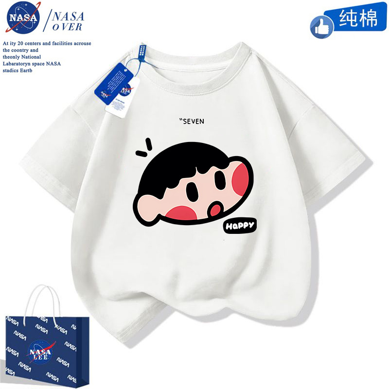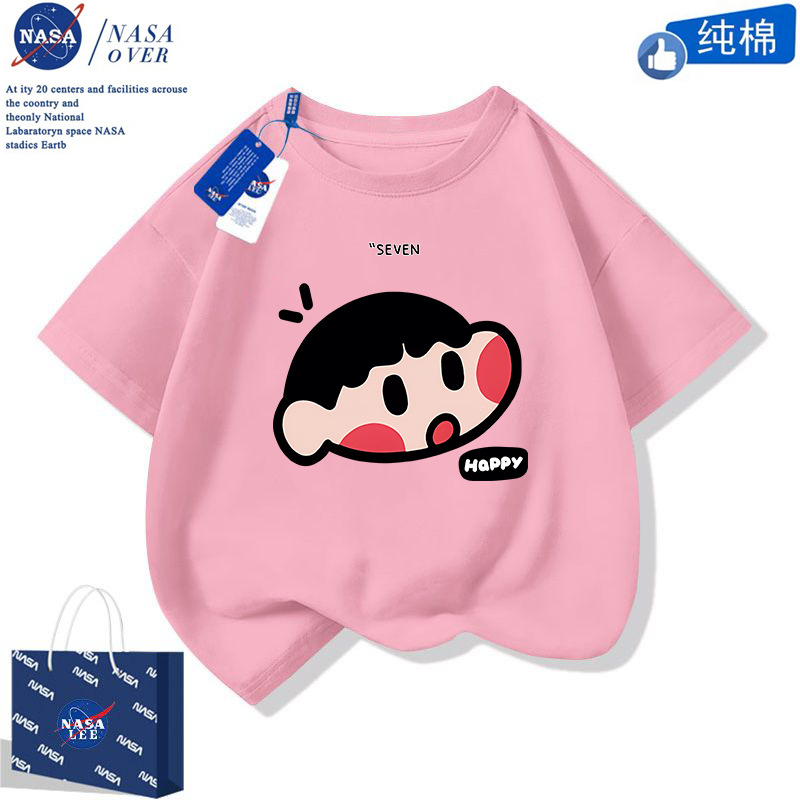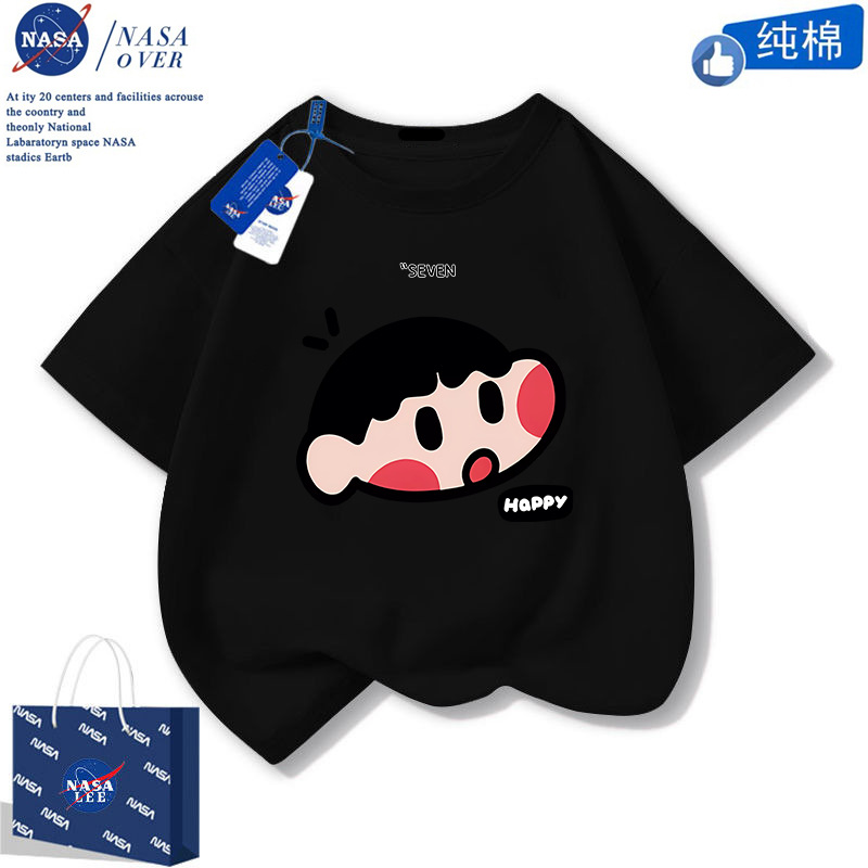NASA 귀여운 니니 남녀 면 티셔츠 2024 여름 만화 반팔 유행 반소매 중대형 어린이 탑스토어 가기