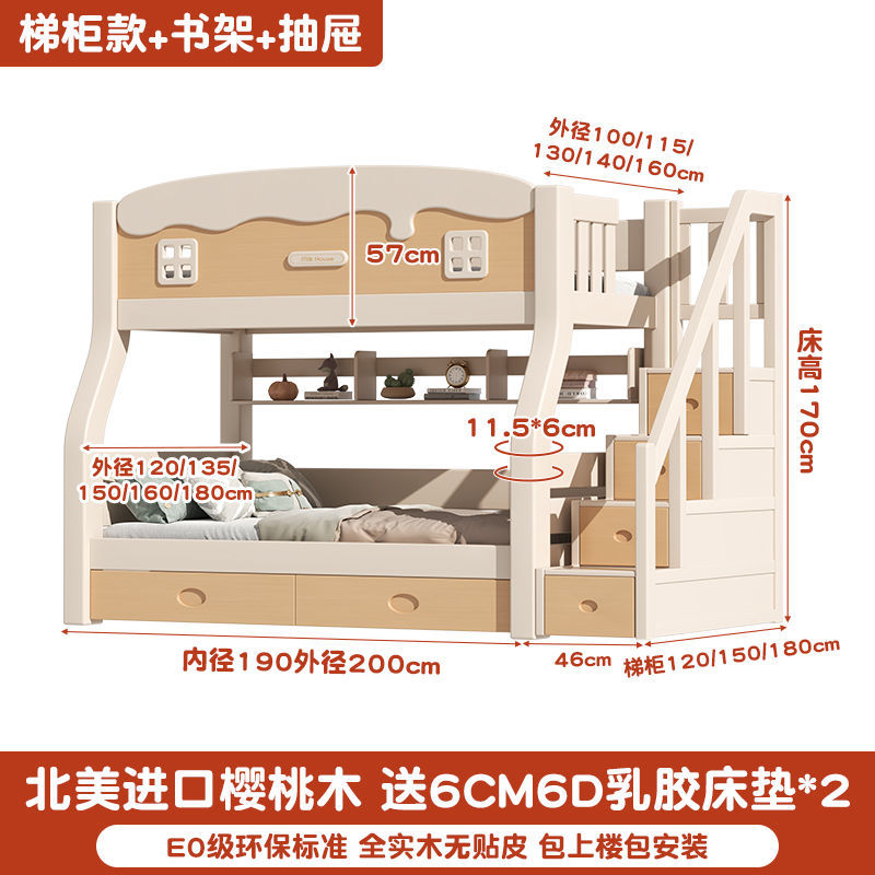 원목 이층침대, 체리나무 이층침대, 경제적인 어린이용 원목 이층침대