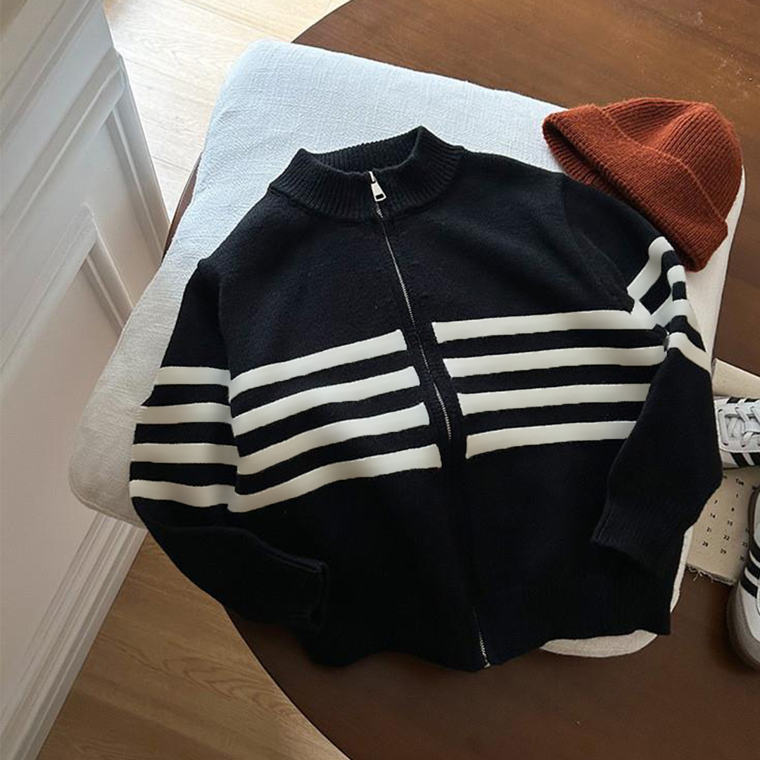 • 블랙 [K219 지퍼 스트라이프 가디건]