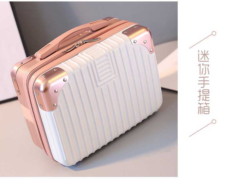 한국식 레트로 스트레이트 코너 대용량 화장품 케이스 여성 소형 여행 수하물 보관 가방 14 인치 미니 핸드 케이스