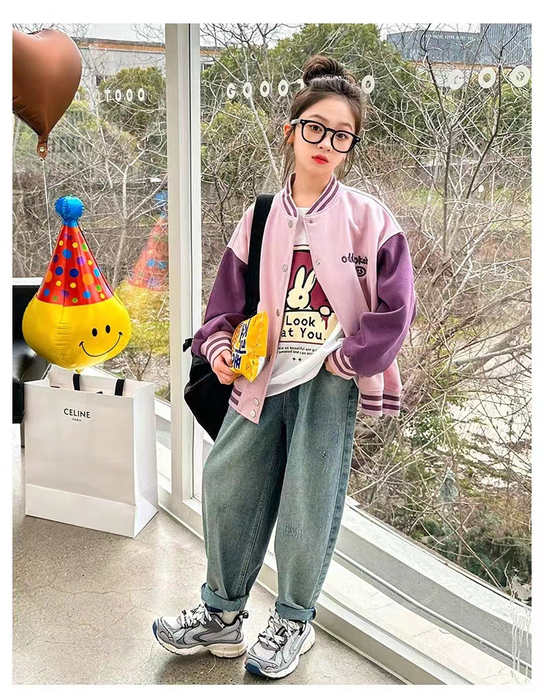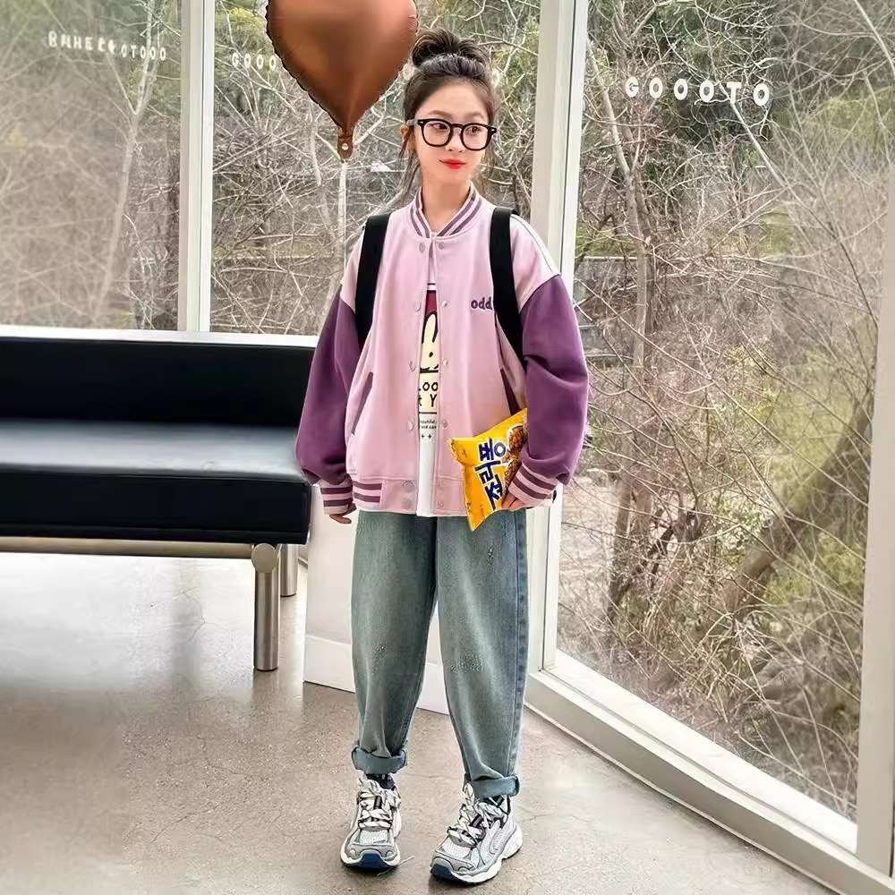 여자 가을 야구 세트 코트 2024 새로운 컬러 매칭 긴팔 한국 카디건 느슨한 지퍼 탑스토어 가기