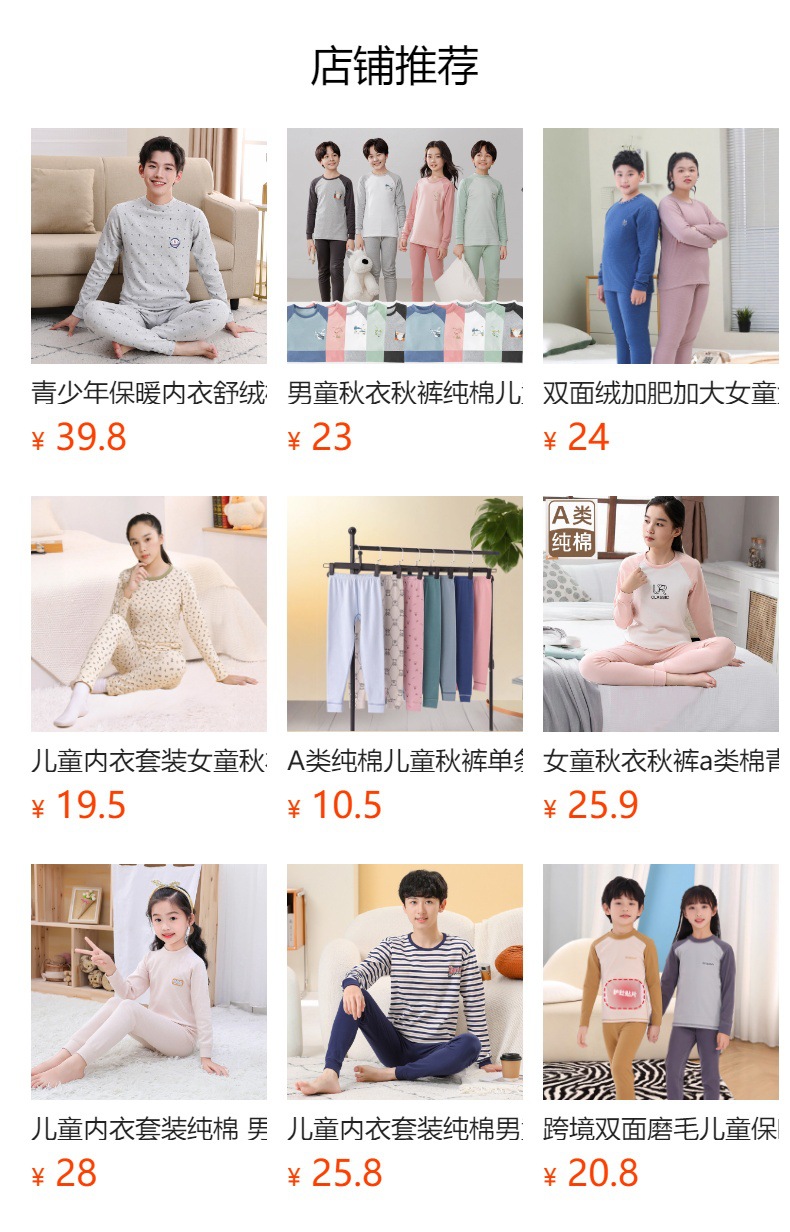어린이 가을 옷과 바지 면화 클래스 A 십대 순면 열 속옷 세트 색면스토어 가기