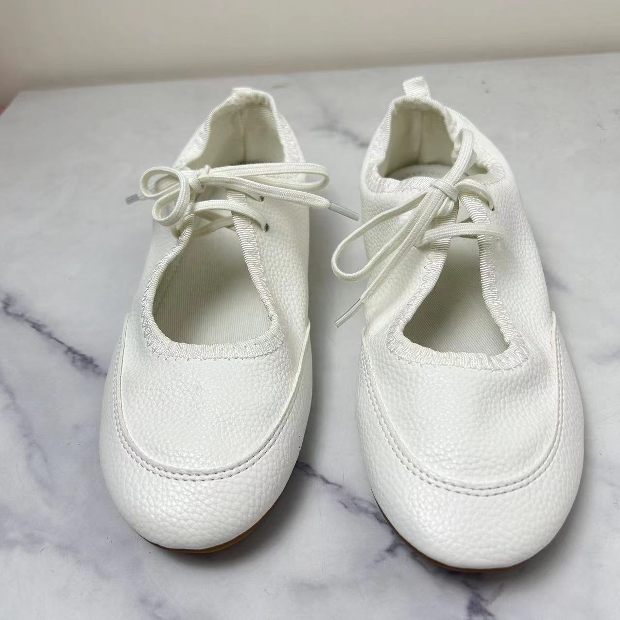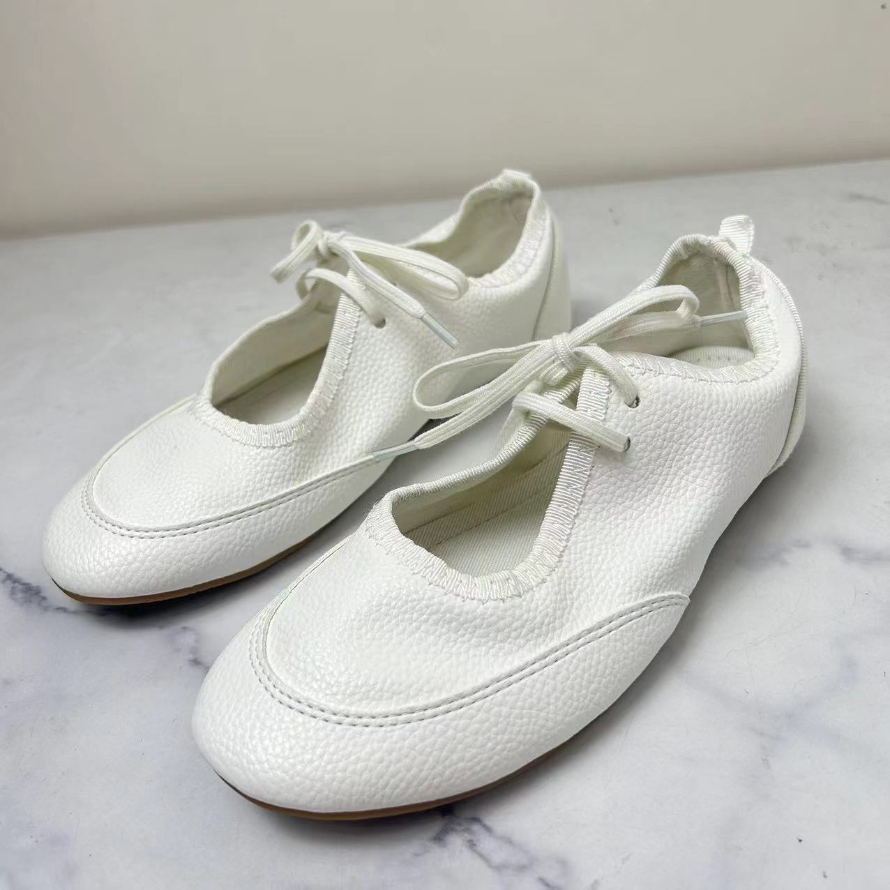 ZA2024 새로운 플랫 발레 신발 영국 스타일 레이스 업 로퍼 라운드 헤드 메리 제인 신발 여성용 얕은 입 싱글 신발스토어 가기