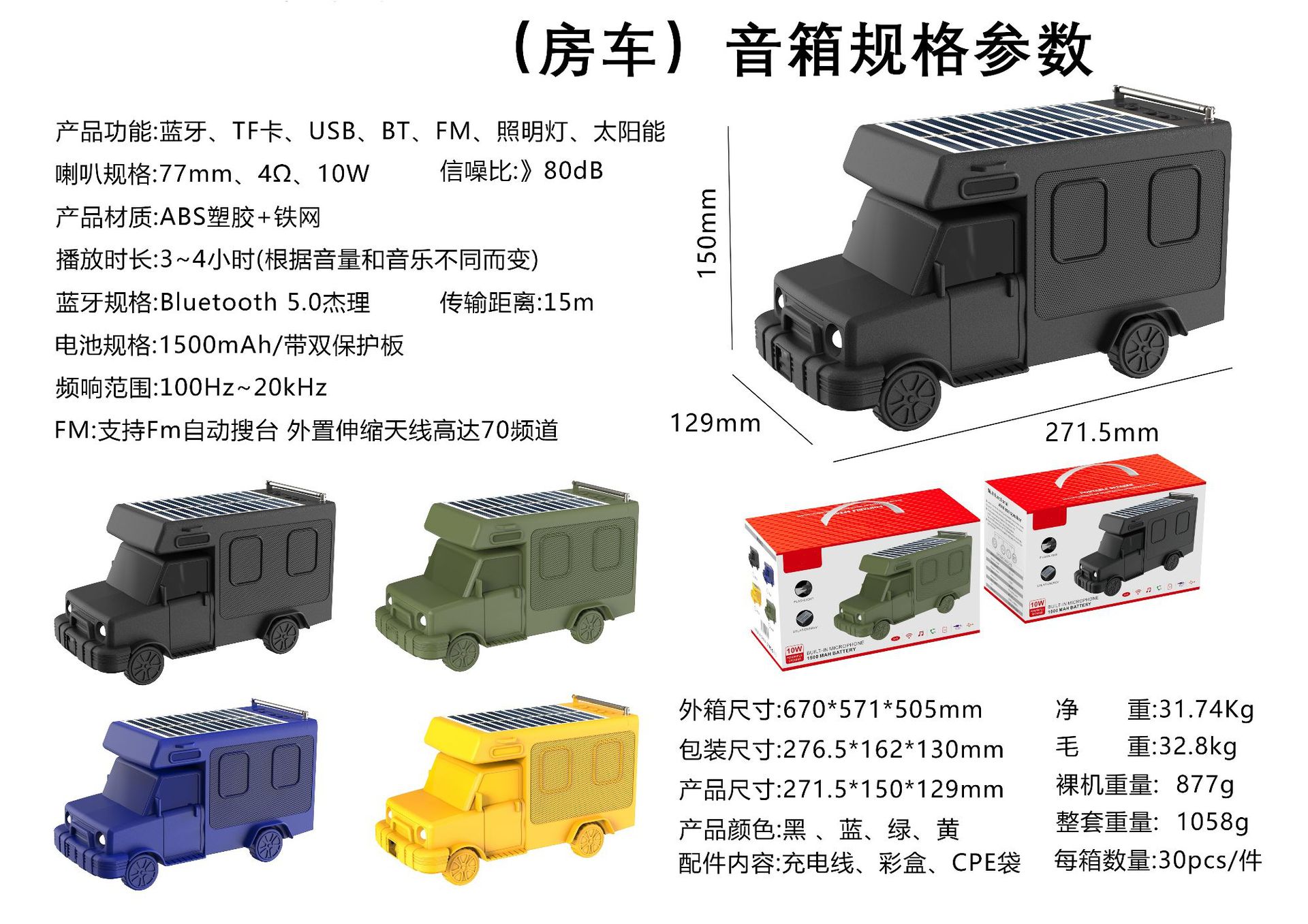 新款房车蓝牙音箱,太阳能充电户外便携广场舞低音炮家用应急手电筒插卡播放器