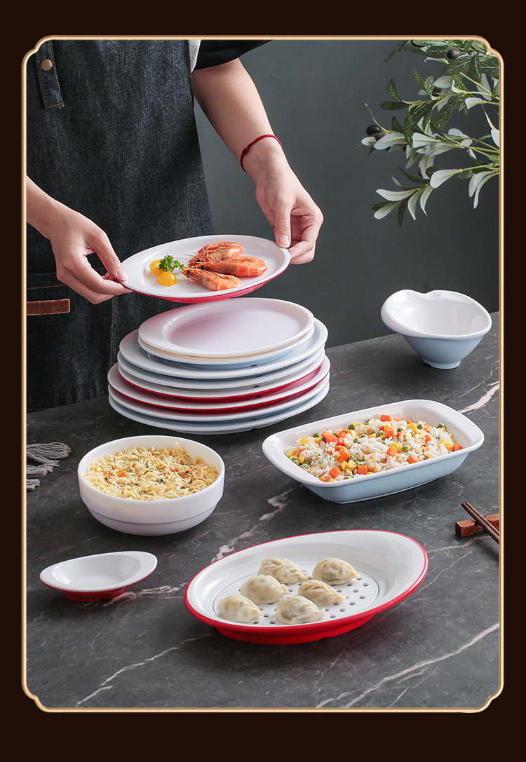 멜라민 만두 접시, 모조 도자기 배수 접시, 체인 매장용 이중층 만두 접시, 특수 접시, 디핑 접시, 차가운 접시스토어 가기