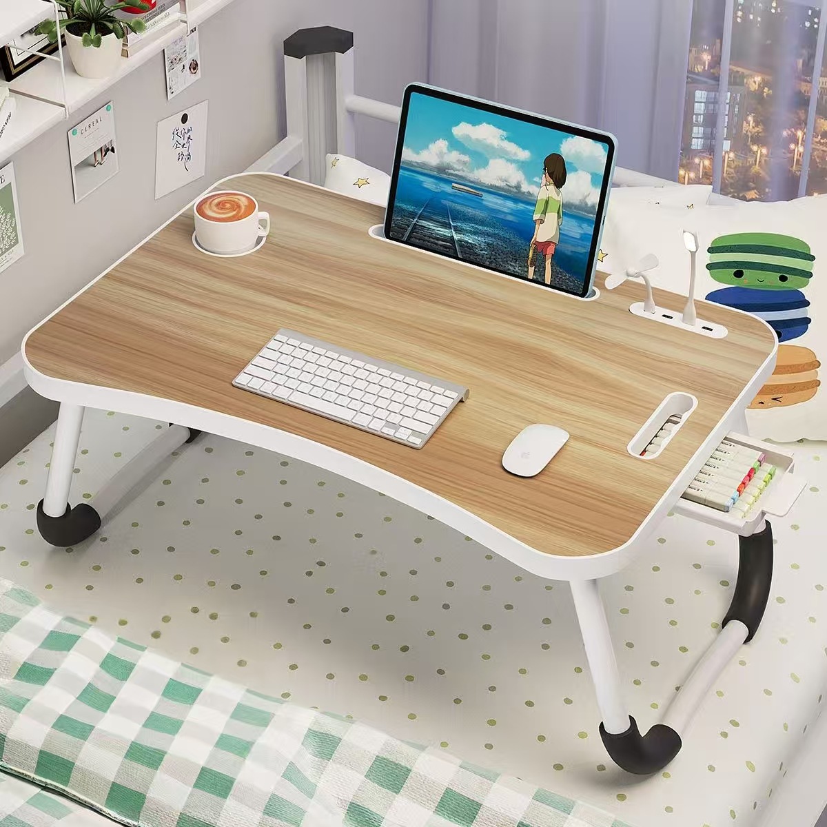 침대 책상 침실 베이 창 게으른 책상 홈 발코니 간단한 접이식 노트북 침대 작은 테이블