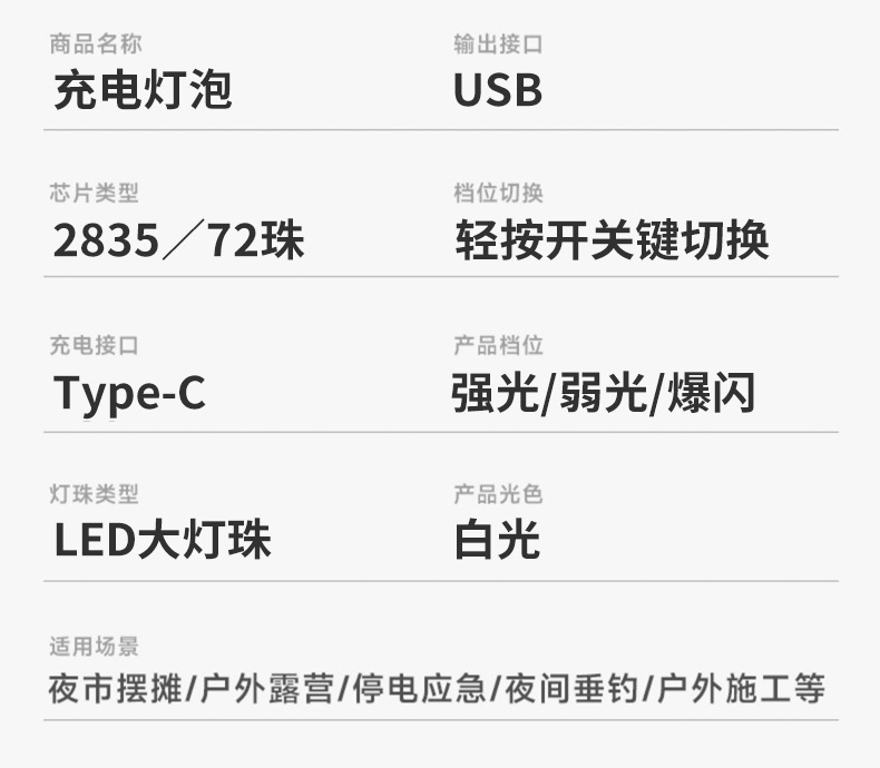 LED 야시장 충전 램프 캠핑 충전 램프 야외 비상 조명 휴대용 실속 충전 램프