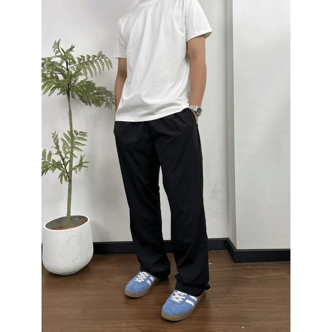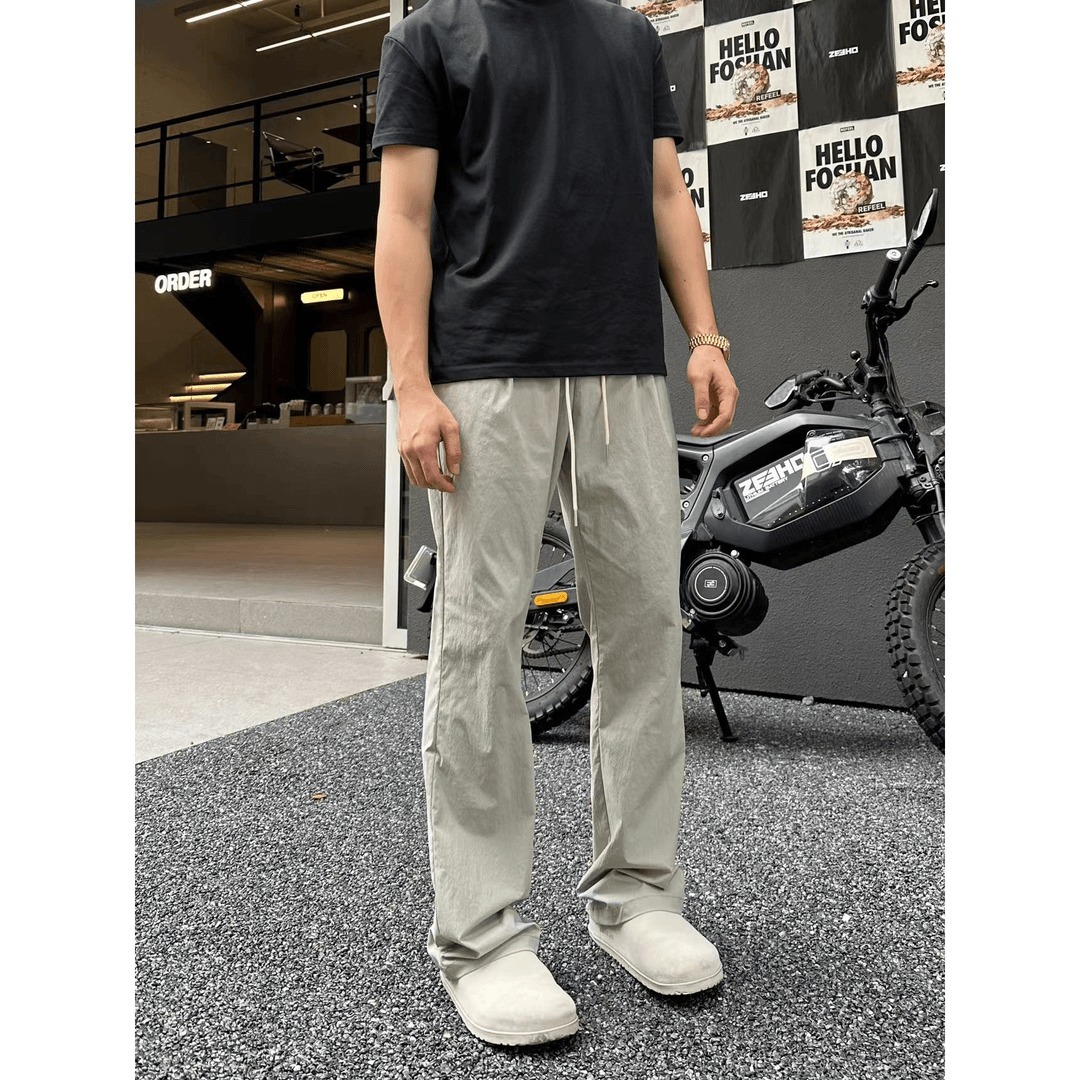 여름 경량 캐주얼 빠른 건조 슬리밍 쿨 느낌 느슨한 야외 빠른 건조 스포츠 스트레이트 튜브 Drapy 소박한 바지 트렌디 브랜드 남성