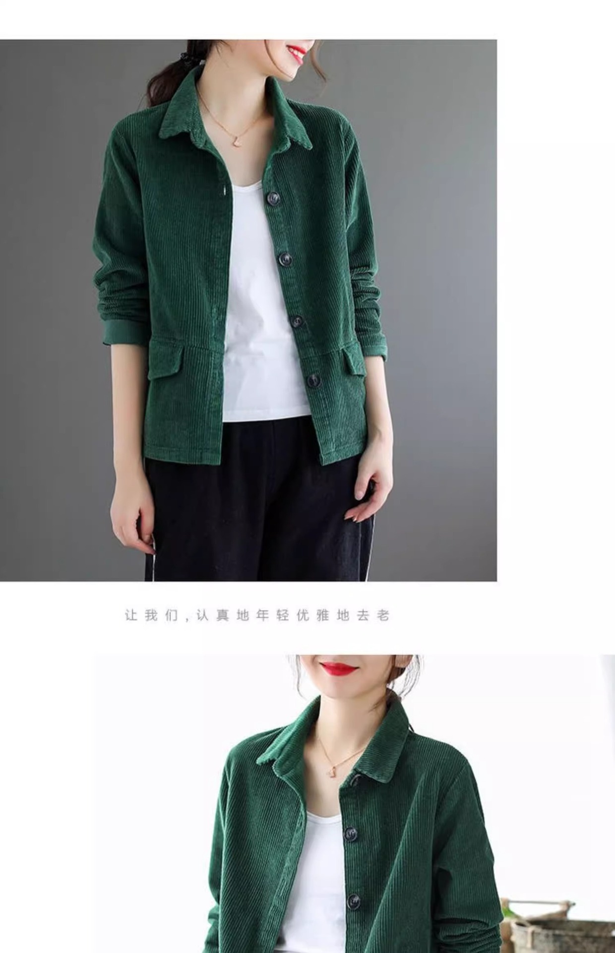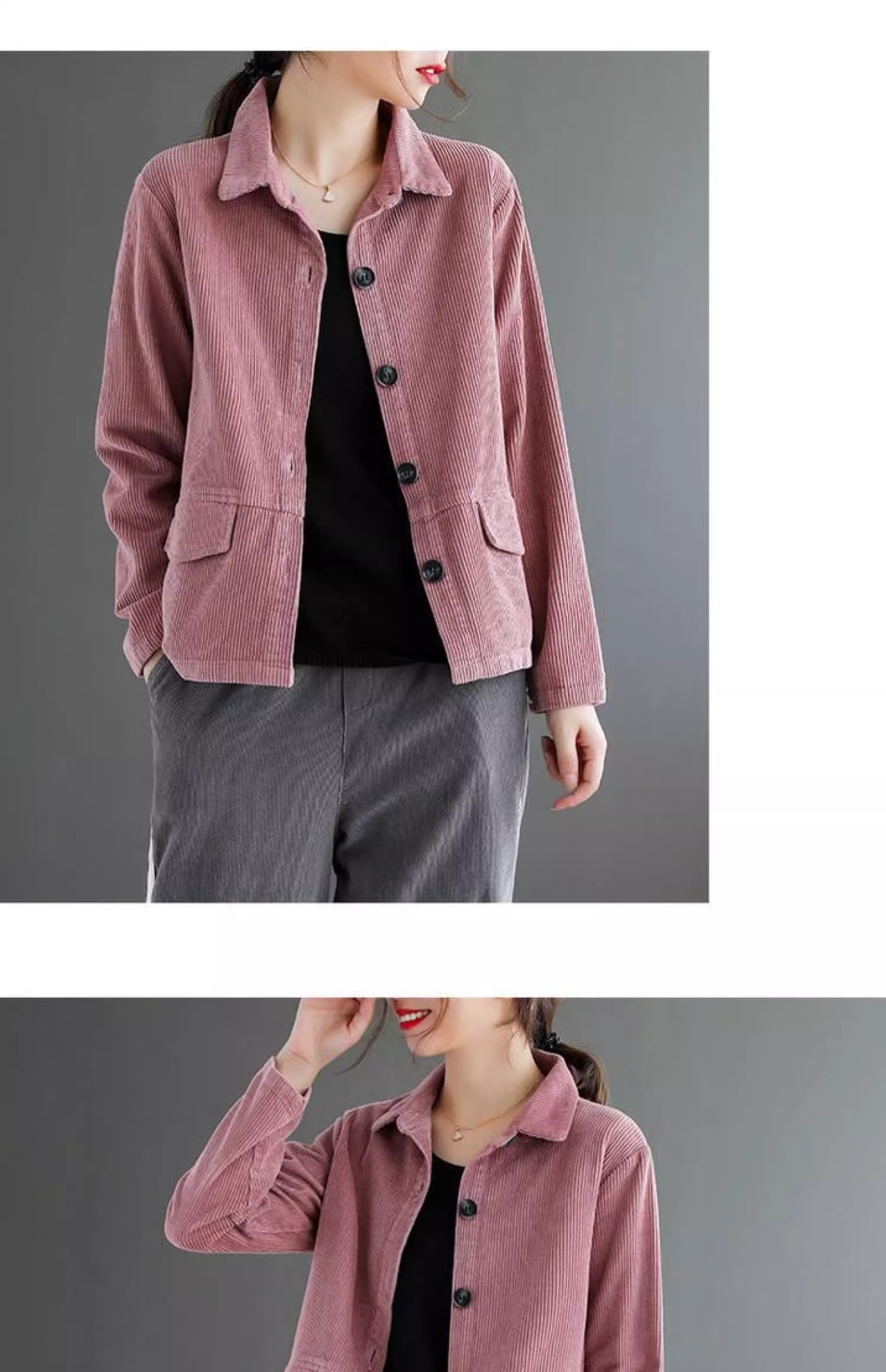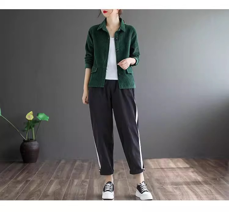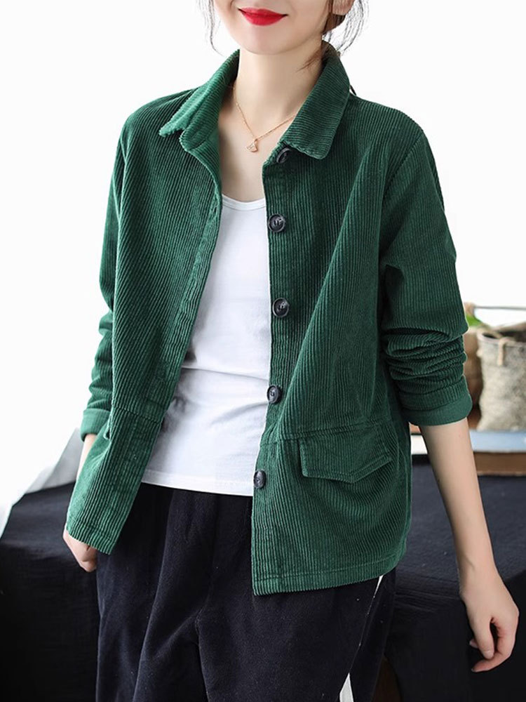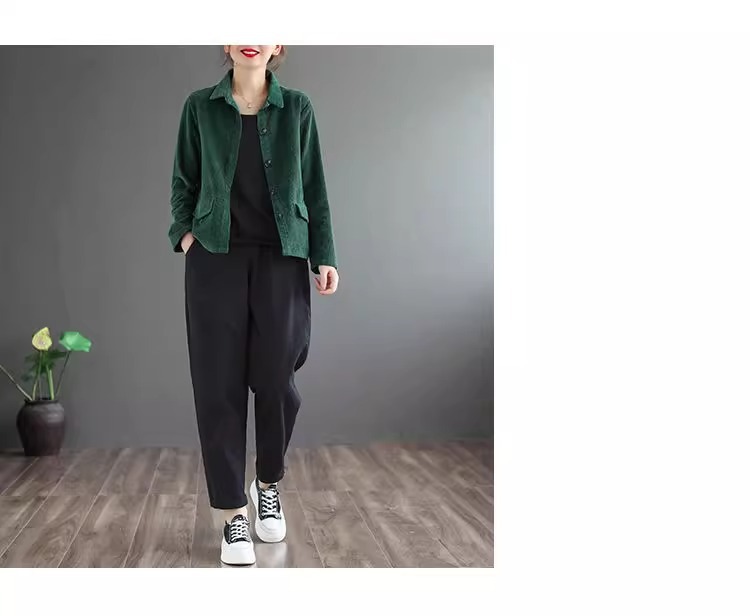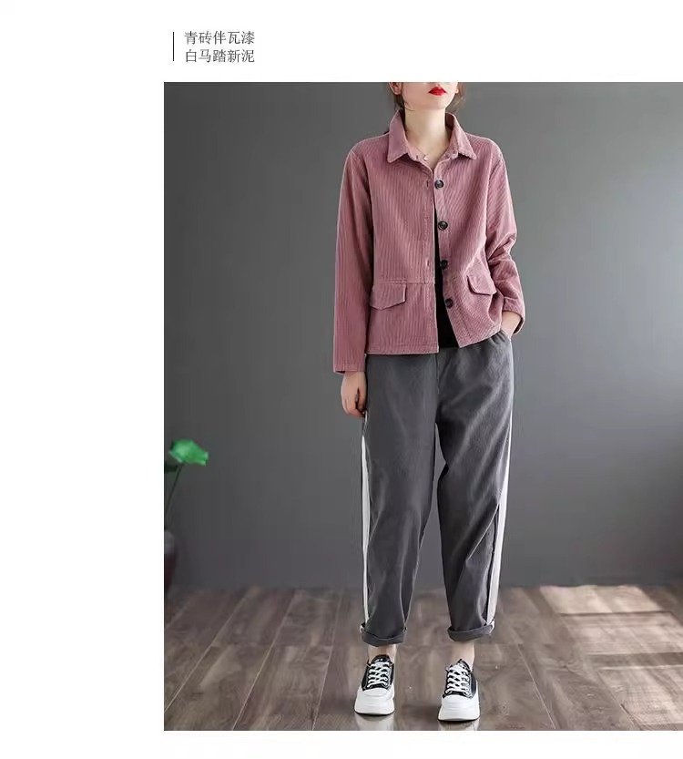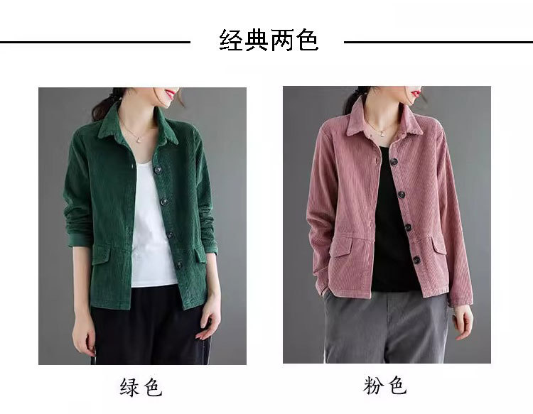 여성을위한 코듀로이 솔리드 컬러 긴팔 짧은 재킷 봄, 가을 2025 새로운 느슨한 복고풍 캐주얼 코듀로이 재킷 탑