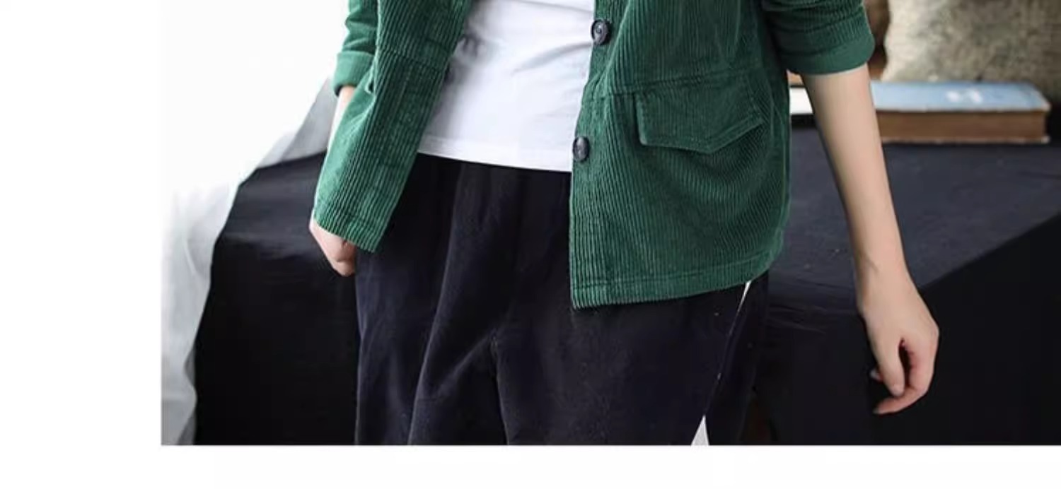 여성을위한 코듀로이 솔리드 컬러 긴팔 짧은 재킷 봄, 가을 2025 새로운 느슨한 복고풍 캐주얼 코듀로이 재킷 탑스토어 가기