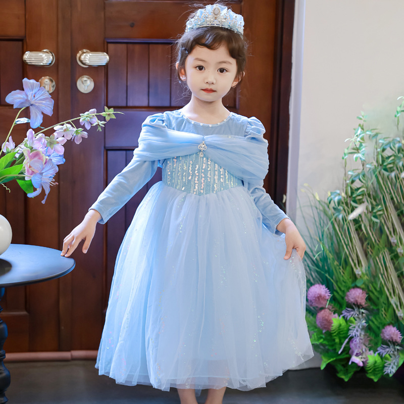 여아 엘사 공주 드레스 2025 신상 아동 가을 원피스 여아 봄 가을 롱 드레스 메쉬 스커트스토어 가기
