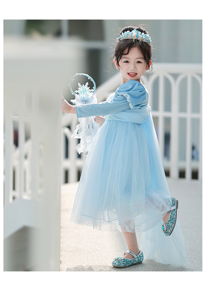 여아 엘사 공주 드레스 2025 신상 아동 가을 원피스 여아 봄 가을 롱 드레스 메쉬 스커트