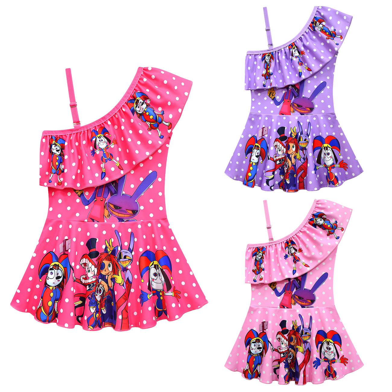 새로운 원피스 원피스 수영복 매직 피규어 서커스 소녀 기울어 진 어깨 원피스 수영복 원피스 20412