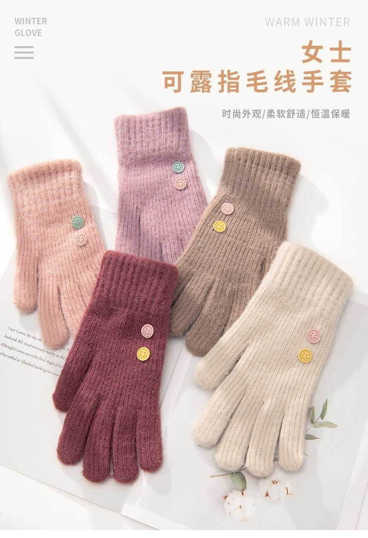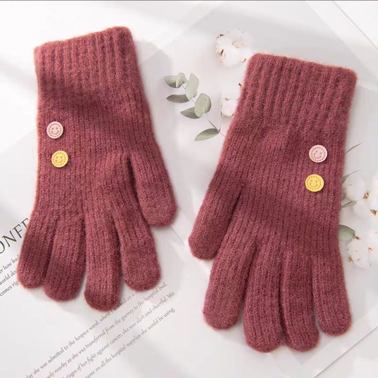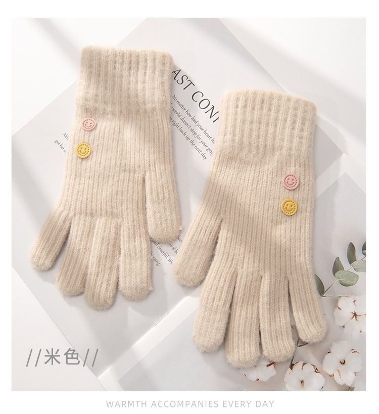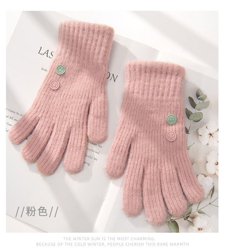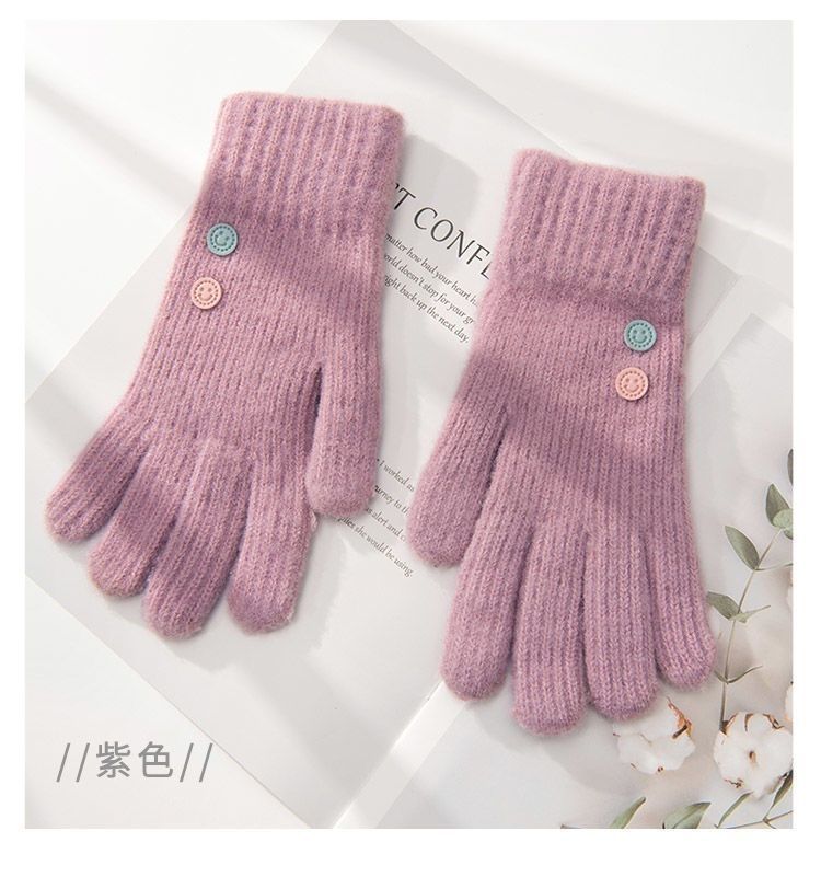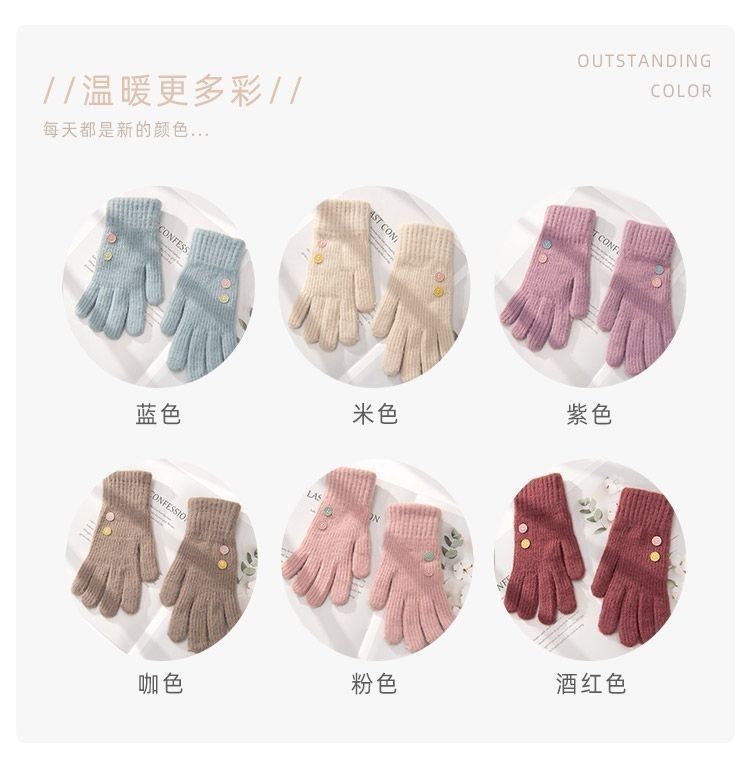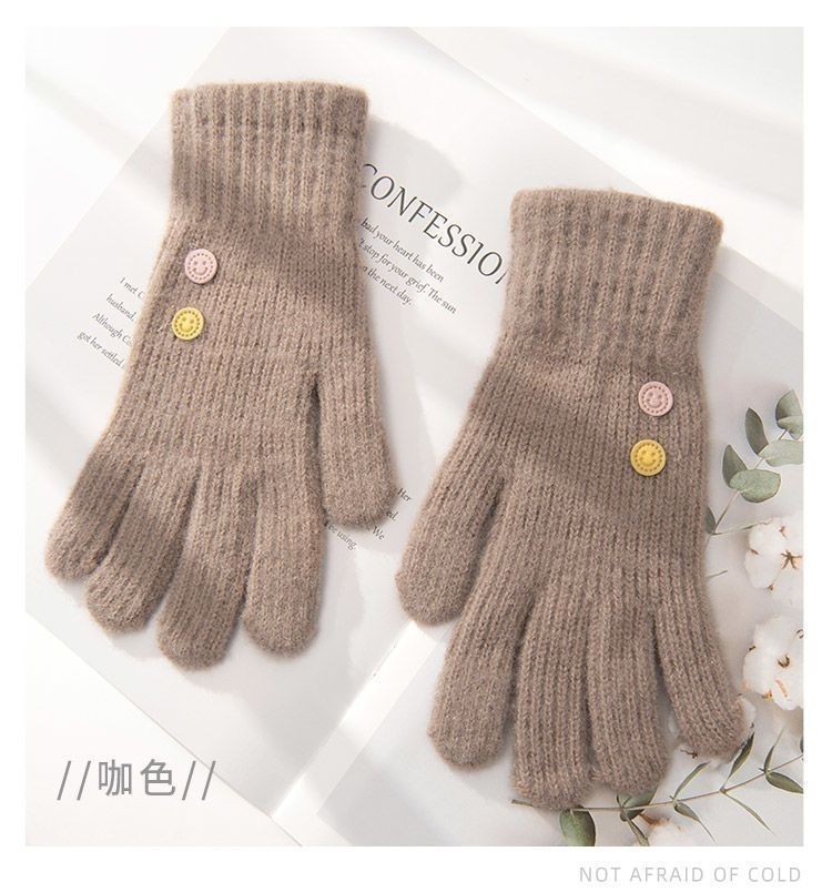 새로운 양모 장갑 소녀 귀여운 겨울 따뜻한 다섯 손가락 니트 터치 스크린 한국 버튼 따뜻한 두꺼운