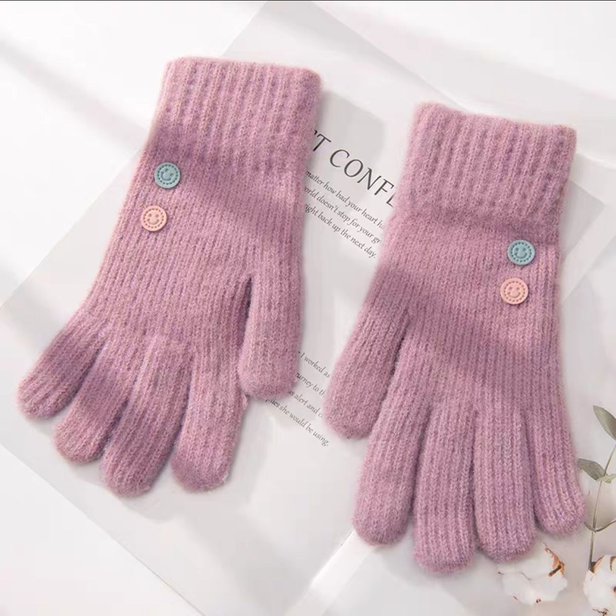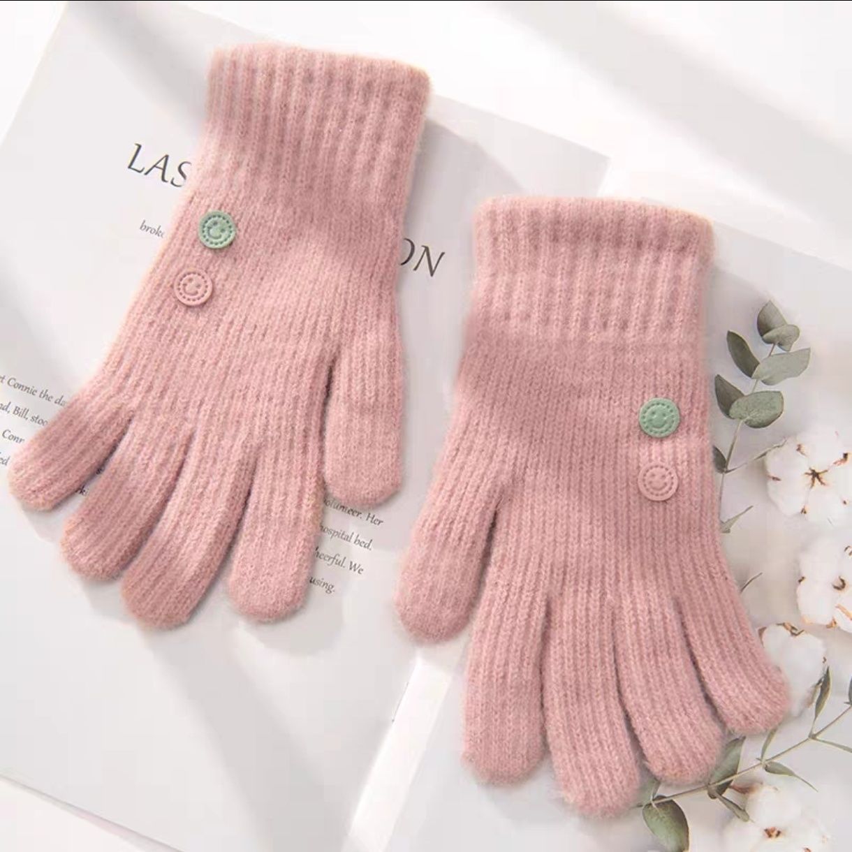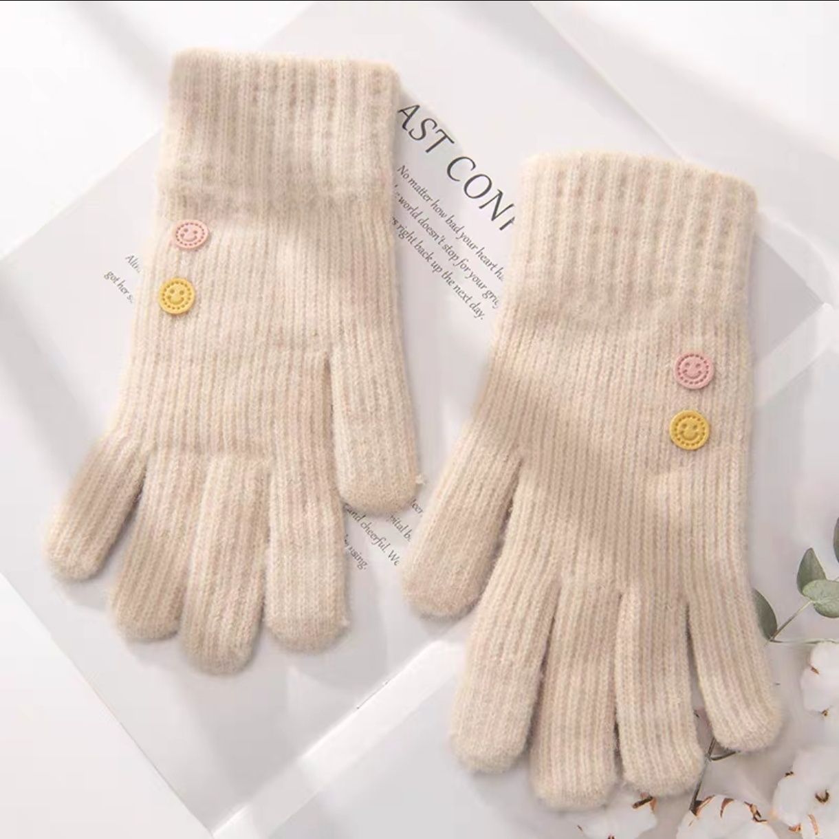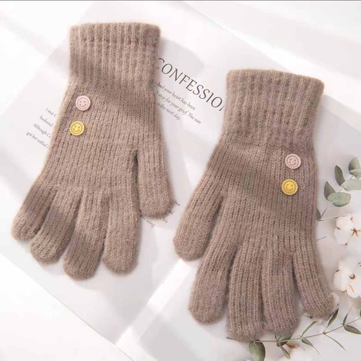새로운 양모 장갑 소녀 귀여운 겨울 따뜻한 다섯 손가락 니트 터치 스크린 한국 버튼 따뜻한 두꺼운